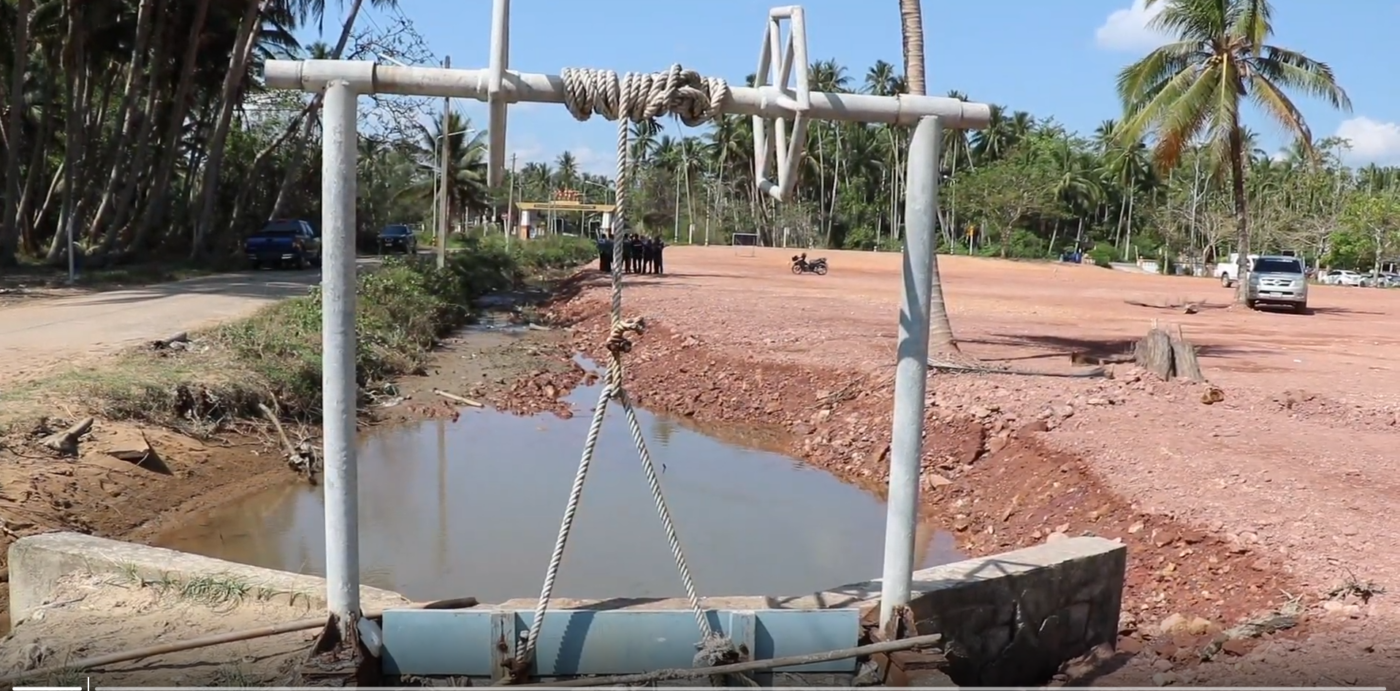 จากการตรวจสอบปรากฏว่า ที่ดินผืนดังกล่าวมีสภาพถมด้วยดินลูกรังเสร็จสิ้นแล้ว ฝั่งทิศเหนือติดแนวเขตโรงเรียนบ้านคอสน ทิศตะวันตกติดถนนทางหลวงชนบทสาย 4008 (บ้านคอสน-พนังตัก) ทิศใต้ติดแนวเขตลำน้ำสาธารณะปากซอยท่ายาง-ปากมหาดซอย 2 (ริมทะเล) มีประตูเปิดปิดระบายน้ำลงสู่ทะเล และทิศตะวันออกถูกถมด้วยดินลูกรังห่างจากเนินทรายริมทะเลชายหาดคอสนประมาณ 15-20 เมตรเท่านั้น อีกทั้งท่อระบายน้ำของโรงเรียนถูกถมปิดทางไม่สามารถระบายน้ำช่วงน้ำท่วมลงสู่ทะเลได้
