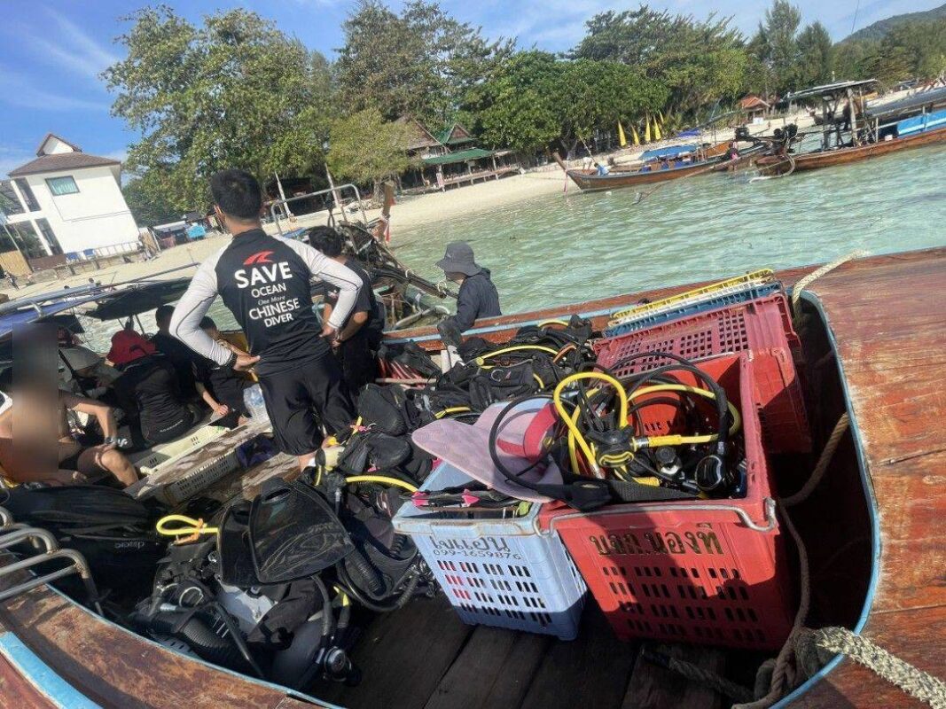 และต่อมาวันที่ 5 กุมภาพันธ์ 2569 ตั้งแต่เวลาประมาณ 08.00 น. เจ้าหน้าที่ชุดจับกุมได้ทำการติดตามพฤติกรรมของกลุ่มชาวจีนที่ได้ลักลอบแอบทำงานเปิดร้านดำน้ำ ให้บริการพานักท่องเที่ยวดำน้ำรอบเกาะหลีเป๊ะ โดยสามารถจับกุมได้ขณะอยู่บนเรือหางยาวพร้อมนักท่องเที่ยวที่เป็นลูกค้าและอุปกรณ์ดำน้ำจำนวนมาก สอบถามทุกรายยอมรับว่าเข้ามาในประเทศไทยด้วยวีซ่าเพื่อการท่องเที่ยวและไม่มีใบอนุญาตทำงาน โดยได้ขอเช่าที่จากคนบนเกาะเพื่อตั้งร้านดำน้ำ เป็นห้องเก็บอุปกรณ์ดำน้ำและห้องทำงาน โดยจะว่าจ้างเรือของชาวบ้านพานักท่องเที่ยวออกไปดำน้ำเป็นประจำ เมื่อได้รับค่าจ้างก็จะนำมาแบ่งกันตามหน้าที่ของแต่ละคน เจ้าหน้าที่ได้จับกุมบุคคลต่างด้าวสัญชาติจีนทั้งหมด รวม 6 ราย ได้แก่