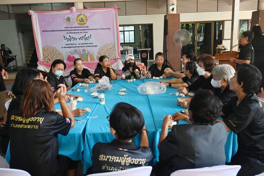 วันที่ 12 กุมภาพันธ์ 2569 นายจิรวัฒน์ สะสมทรัพย์ นายก อบจ.นครปฐม เป็นประธานในพิธีเปิดโครงการฝึกอบรมอาชีพดอกไม้ช่อสุดท้ายให้แก่สมาคมผู้สูงอายุอำเภอสามพราน จังหวัดนครปฐม พร้อมด้วย ประธานสภา, รองประธานสภา, สมาชิกสภา, หัวหน้าส่วนราชการ และเจ้าหน้าที่ อบจ.นครปฐม ณ สมาคมผู้สูงอายุอำเภอสามพราน จ.นครปฐม โดย อบจ.นครปฐม ได้ให้การสนับสนุนการจัดทำโครงการดังกล่าว เพื่อสร้างทักษะอาชีพ เพิ่มทางเลือกในการประกอบอาชีพให้แก่ผู้สูงอายุ เพื่อให้ได้ใช้เวลาว่างให้เกิดประโยชน์ เพิ่มรายได้ให้แก่ตนเองและครอบครัวได้อีกทางหนึ่ง