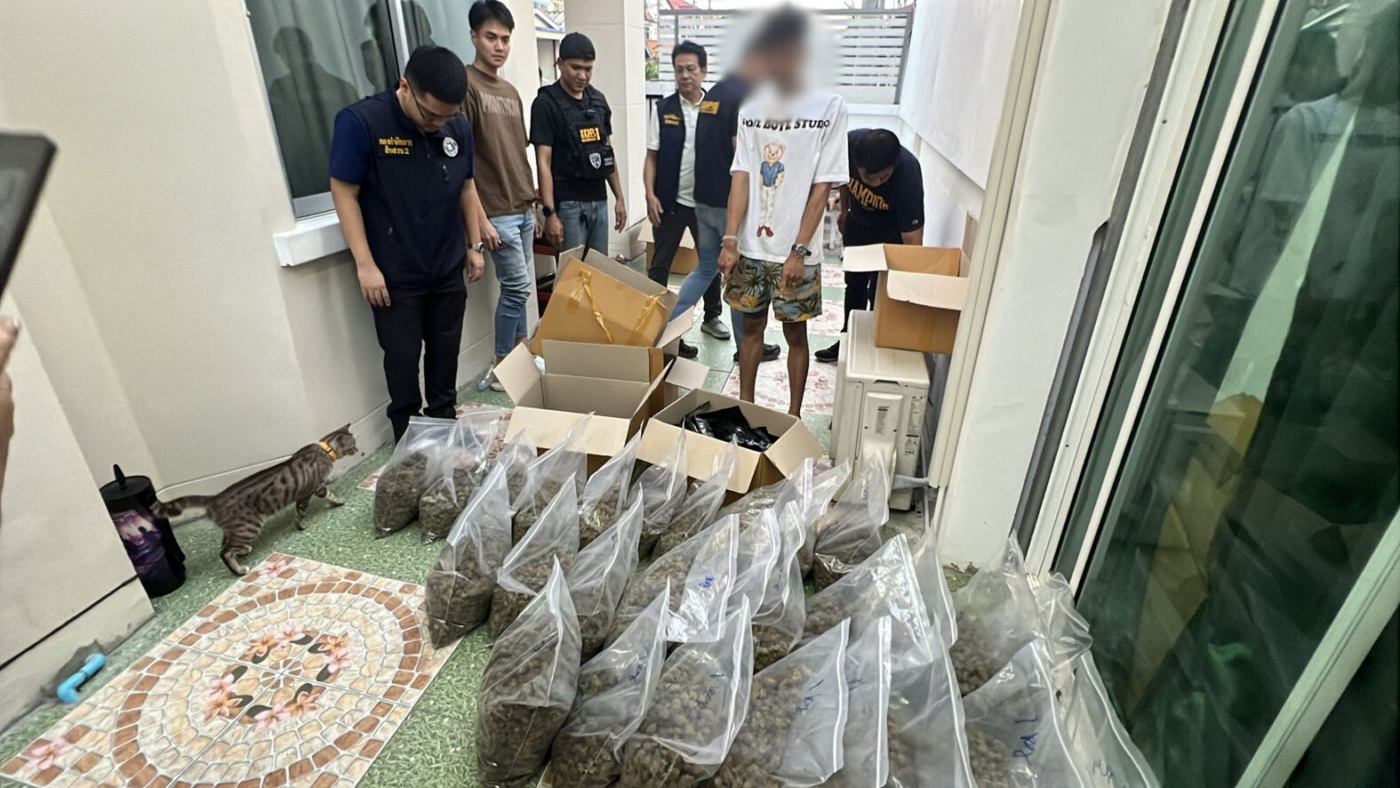 จากการสืบสวนทราบว่ากลุ่มผู้ต้องหาได้นำของกลางทั้งหมดมาขายให้ นายวชิรวิทย์ คารมหวาน อายุ 26 ปี และ นายวรากร คารมหวาน อายุ 31 ปี จึงได้ทำการขอหมายค้นที่ศาลจังหวัดสมุทรปราการ หมายค้นที่ ค.105/2569 ลง วันที่ 14 กุมภาพันธ์ 2569 เพื่อทำการล่อซื้อและเข้าตรวจค้นบ้านเลขที่หลังดังกล่าว จึงได้เข้าทำการตรวจค้นบ้านหลังดังกล่าว พบ นายวชิรวิทย์ฯ , นายวรากรฯ อยู่ภายในบ้านหลังดังกล่าว จึงได้ทำการจับกุมพร้อมด้วยของกลางดังกล่าวข้างต้น โดยรับซื้อมา กิโลกรัมละ 4,600 บาท จำนวน 156 กก. เป็นเงินทั้งสิ้น 720,000 บาท