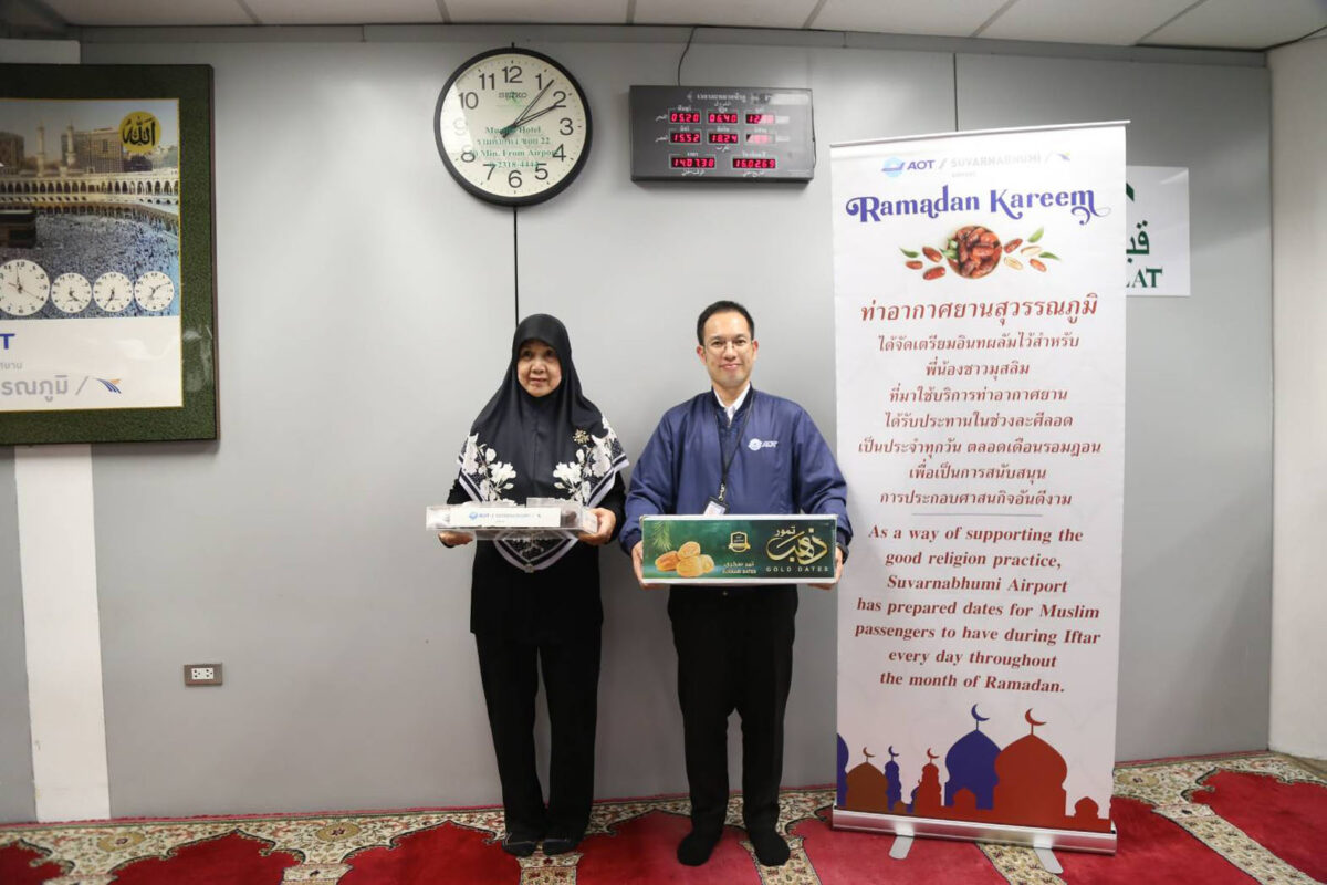 ท่าอากาศยานสุวรรณภูมิ (ทสภ.) สนับสนุนการปฏิบัติศาสนกิจของพี่น้องชาวมุสลิมในช่วงเดือนรอมฎอนอันศักดิ์สิทธิ์ ประจำปี 2569 โดยจัดเตรียมอินทผลัมและน้ำดื่มตราสัญลักษณ์ ทสภ. ให้บริการโดยไม่คิดค่าใช้จ่ายทุกวัน ระหว่างวันที่ 19 กุมภาพันธ์ – 19 มีนาคม 2569 ณ ห้องละหมาด ชั้น 3 อาคารผู้โดยสาร เพื่ออำนวยความสะดวกแก่ผู้โดยสารที่ถือศีลอดให้สามารถละศีลอดได้อย่างเหมาะสมในช่วงเวลาหลังดวงอาทิตย์ตก ระหว่างการเดินทาง การดำเนินการดังกล่าวสะท้อนถึงความมุ่งมั่นของ ทสภ. ในการยกระดับมาตรฐานการให้บริการ โดยคำนึงถึงความหลากหลายทางวัฒนธรรมและศาสนา พร้อมส่งเสริมความเข้าใจและการอยู่ร่วมกันอย่างเคารพในสังคมพหุวัฒนธรรม