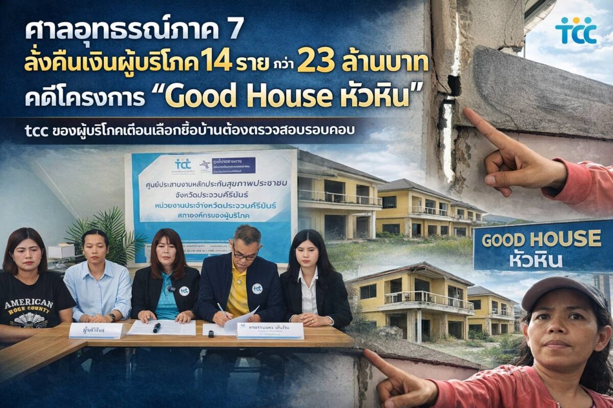ประจวบคีรีขันธ์ – ศาลอุทธรณ์ภาค 7 สั่งคืนเงินผู้บริโภค 14 ราย กว่า 23 ล้านบาท คดีโครงการ “Good House หัวหิน” tcc ของผู้บริโภคเตือนเลือกซื้อบ้านต้องตรวจสอบรอบคอบ