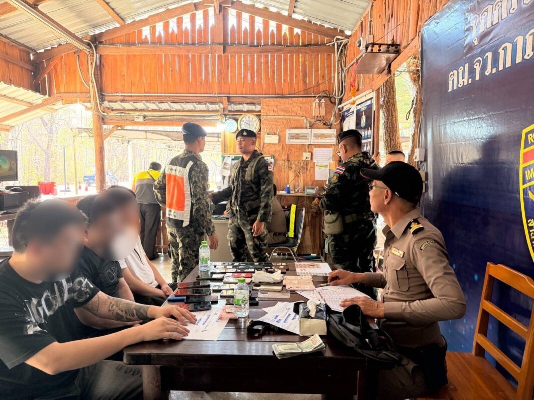 จากการสอบถาม ผู้ถูกจับที่ 1 ได้ให้การว่าวันนี้ (1 มี.ค.69) เวลาประมาณ 01.00 น. ได้มีผู้เรียกให้ตนให้ไปรับผู้โดยสาร ผ่านแอปพลิเคชันหนึ่ง บริเวณสวน Boonsai Hyde Park หมู่บ้านนวธานี ถนนเสรีไทย แขวงรามอินทรา เขตคันนายาว กรุงเทพฯ เพื่อไปส่งที่เจดีย์สามองค์ อ.สังขละบุรี จ.กาญจนบุรี เมื่อไปถึงจุดรับ ซึ่งเป็นโรงแรม (จำชื่อโรงแรมไม่ได้) พบชาย 4 คน เป็นต่างชาติ 3 คน และมีชาย 1 คน เป็นบุคคลสัญชาติไทย เจรจาขอยกเลิกการรับ – ส่ง จากแอปพลิเคชัน โดยขอว่าจ้างให้เป็นการรับ – ส่ง แบบเหมาจ่าย เป็นเงินสด จำนวน 5,000 บาทแทน โดยให้ไปส่งยัง อ.สังขละบุรี จ.กาญจนบุรี ผู้ถูกจับที่ 1 จึงได้ตอบรับ จากนั้นชายต่างชาติ จำนวน 3 คน (ผู้ถูกจับที่ 2-4) ได้ขึ้นมานั่งโดยสารบนรถ ซึ่งบุคคลสัญชาติไทยไม่ได้เดินทางมาด้วย แต่แจ้งว่าได้คุยกับผู้โดยสารเรียบร้อยแล้วว่าให้มอบเงินสด จำนวน 5,000 บาท เมื่อถึงปลายทาง แต่มาถูกจับกุมเสียก่อน