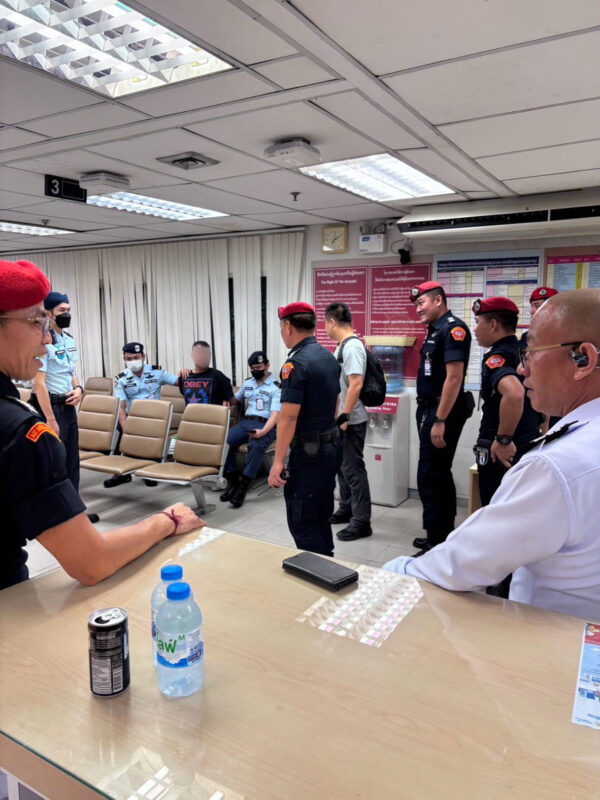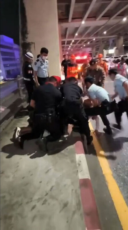 ภายในอาคารผู้โดยสารขาเข้าชั้นที่ 2 ริมถนนยกระดับด้านนอก จับภาพนาทีที่ นายภัคพล ปานยงค์ ตำแหน่ง จทบ.7 สจร.ฝรภ.ทสภ ซึ่งเข้าเวรเป็นหัวหน้าฝ่ายรักษาความปลอดภัย (เสื้อขาว) ตัดสินใจเข้าคว้าตัว นักท่องเที่ยวชายชาวรัสเซียรายหนึ่ง ที่อกมายืนอยู่ขอบด้านนอกของทางยกระดับและขู่ว่าจะทิ้งตัวลงสู่พื้นราบ โดยเหตุการณ์ในครั้งนี้ สืบเนื่องจากช่วงค่ำของวันที่ 1 มีนาคม 69 ที่ผ่านมา ศูนย์รักษาความปลอดภัยของท่าอากาศยานสุวรรณภูมิ ได้รับแจ้งเหตุว่ามีคนไปพบเห็นชายชาวต่างชาติรายหนึ่ง ออกมายืนโวยวายและมีท่าทีจะก่อเหตุไม่คาดคิดขึ้น ฝ่ายรักษาความปลอดภัยของท่าอากาศยานสุวรรณภูมิ จึงประสานชุดเคลื่อนที่เร็วของเจ้าหน้าที่ รปภ.การท่า พร้อมด้วย ทีมแพทย์ เจ้าหน้าที่ดับเพลิงและกู้ภัยการท่า และเจ้าหน้าที่ตำรวจ สภ.ท่าอากาศยานสุวรรณภูมิ นำกำลังเข้าพื้นที่ทีนที