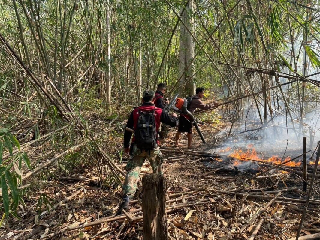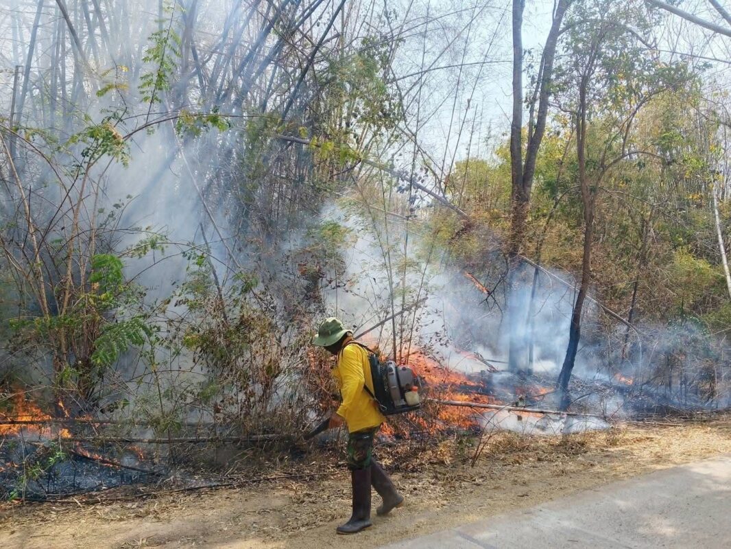 สำหรับจุดความร้อนรอบเช้า ของวันที่ 9 มีนาคม 2569 D_4215 พิกัด 47P 477386E 1612890N , D_4216 พิกัด 47P 478316E 1613145N , D_4217 พิกัด 47P 481961E 1613780N , D_4218 พิกัด 47P 480247E 1614038N , D_4219 พิกัด 47P 482043E 1614162N และ D_4220 พิกัด 47P 480317 E 1614423N บริเวณป่าพระบาท ท้องที่ตำบลลิ่นถิ่น อำทอทองผาภูมิ จังหวัดกาญจนบุรี ได้นำกำลังเจ้าหน้าที่จำนวน 10 นาย ประกอบด้วย เจ้าหน้าที่อุทยานแห่งชาติเขื่อนศรีนครินทร์ และเจ้าหน้าที่จุดเฝ้าระวังไฟป่าที่ 53/60, 53/60 (บ้านลิ่นถิ่น) เข้าปฏิบัติการ โดยสามารถควบคุมไฟได้หมดแล้ว และได้ส่งกำลังเข้าไปตรวจตามจุดแนวดำ สภาพพื้นที่เป็นป่าเบญจพรรณผสมป่าไผ่ พบพื้นที่เสียหายประมาณ 1,000 ไร่ เจ้าหน้าที่ทุกนายปลอดภัย ทั้งนี้ ยังไม่ทราบสาเหตุของการการเกิดไฟป่าในครั้งนี้ และจุดความร้อนรอบเช้า เวลา 01.36 น. ของวันที่ 10 มีนาคม 2569 D_4460 พิกัด 47P 494644E 1626446N บริเวณป่าองบะ ท้องที่บ้านปากเหมือง หมู่ที่ 7 ตำบลด่านแม่แฉลบ อำเภอศรีสวัสวัสดิ์ จังหวัดกาญจนบุรี ได้นำกำลังเจ้าหน้าที่จำนวน 15 นาย ประกอบด้วย อุทยานแห่งชาติเขื่อนศรีนครินทร์ ร่วมกับเจ้าหน้าที่ชุดปฏิบัติการพิศษดับไฟป่า (เสือไฟกาญจนบุรี) และเจ้าหน้าที่จุดเฝ้าระวังไฟป่าที่ 34/60 (บ้านปากเหมือง) เข้าปฏิบัติการ โดยสามารถควบคุมไฟได้หมดแล้ว และได้ส่งกำลังเข้าไปตรวจตามจุดแนวดำ ซึ่งพบว่าสภาพพื้นที่เป็นป่าเบญจพรรณผสมป่าไผ่ มีพื้นที่เสียหายประมาณ 100 ไร่ โดยเจ้าหน้าที่ทุกนายปลอดภัย ทั้งนี้ ยังไม่ทราบสาเหตุของการการเกิดไฟป่าในครั้งนี้