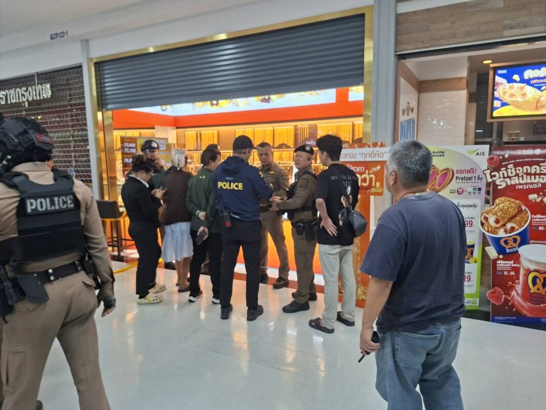 โดยเล่าให้เจ้าหน้าที่ตำรวจว่า ก่อนเกิดเหตุ ขณะนั้นตนเองกำลังดำเนินการเก็บร้านอยู่ มีชาย 1 คน ลักษณะการแต่งกายดี แต่งกายสวมเสื้อแขนยาวลายสก็อตสีขาวดำ กางเกงขายาวสีดำ รองเท้าคัทชูสีดำ กระเป๋าคาดเอว สวมใส่หมวกกันน็อคแบบเต็มใบสีดำ เดินเข้ามาที่ร้าน โดยถืออาวุธปืนสั้นไม่ทราบขนาด มาถึงข่มขู่พนักงาน ให้พนักงานนำทองมาให้และหยิบถุงพลาสติกจากกะเป๋าคาดเอวให้พนังงานนำทองใส่ ขณะนั้นมีพนักงานหญิงคนหนึ่งพยายามเดินออกมาที่คนร้ายคนร้ายได้ยิง ปืนขู่1 นัด จากนั้นตนร้ายได้ปีนขึ้นตู้กระจก แล้วคว้าถาดทองสร้อยคอทองคำจำนวน 2 บาทซึ่งแขวนอยู่ประมาณ 20 เส้น ด้วยชายคนดังกล่าวได้ถือถุงพลาสติกไว้ที่มือซ้ายก่อนจะรวบรวมใส่ถุงอย่างรวดเร็ว จากนั้นเมื่อได้ทองคำเเละทรัพย์สินดังกล่าวไป คนร้ายยิงปืนขึ้นในห้าง 3 นัด เพื่อเปิดทางหนี แล้ววิ่งออกไปทันที ตนจึงได้กดสัญญาณแจ้งภัย และแจ้งเจ้าหน้าที่ตำรวจเข้ามาตรวจสอบ