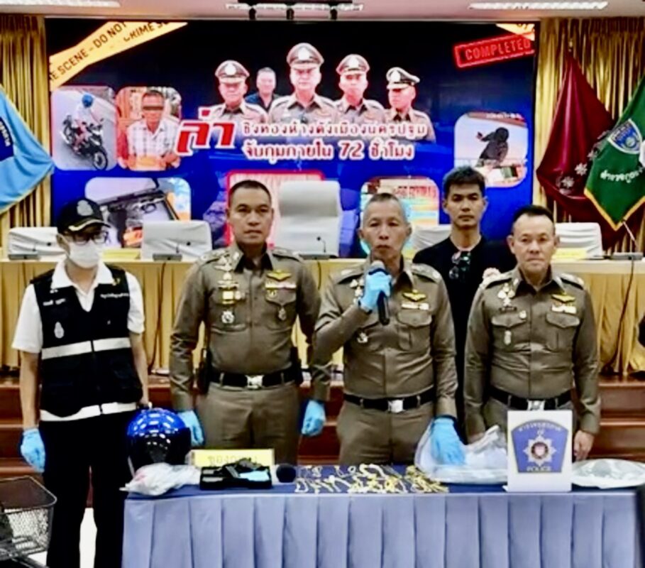วันที่ 14 มีนาคม 2569 ที่กองบัญชาการตำรวจภูธรภาค 7 ต.พระปฐมเจดีย์ อ.เมือง จ.นครปฐม พล.ต.ท.พิสิฐ ตันประเสริฐ ผบช.ภ.7 พล.ต.ต.ชมชวิณ ปุระธนานนท์ รอง ผบช.ภ.7 พล.ต.ต.พิทักษ์ อุปพงษ์ ผบก.ภ.จว.นครปฐม พล.ต.ต.กานต์ ธรรมเกษม ผบก. สส.ภ.7 พ.ต.อ.ณัฐพิสิษฐ์ รัตนอุดม ผกก.กก.1 บก.สส.ภ.7 พ.ต.อ.พงษ์สวัสดิ์ คำปาเชื้อ รอง ผบก.ภ.จว.นครปฐม พ.ต.อ.อิทธิพล พรเทวบัญชา รอง ผบก.ภ.จว.นครปฐม พ.ต.อ.พัฒพงศ์ คนแรง รอง ผบก.บก.กค.ภ.7 พ.ต.อ.ธนบดี บุญพา นวท.(สบ4)กลุ่มงานตรวจสถานที่เกิดเหตุ ศพฐ.7 พ.ต.อ.ปิโยรส กัณหะสิริ ผกก.กก.สส.ภ.จว.นครปฐม พ.ต.อ.อชิรวัตติ์ ถาวรเจริญวัฒน์ผกก.สภ.เมืองนครปฐม พ.ต.ท.ตะวัน วัฒนรังสรรค์ รอง ผกก.ป.สภ.เมืองนครปฐม, พ.ต.ท.ฤทธิชัยปกรณ์ ดำรงค์อิทธิสกุล รอง ผกก. สส.สภ.เมืองนครปฐม,ชุดสืบสวน กก.สส.ภ.7 ชุดสืบสวน กก.สส.ภ.จว.นครปฐม ชุดสืบสวน สภ.เมืองนครปฐม ได้ร่วมแถลงผลการจับกุมผู้ต้องหาที่ก่อเหตุ ชิงทรัพย์ร้านทอง ภายในห้างดังนครปฐม คือนายสมชาย (ขอสงวนนามสกุล) อายุ 55 ปี ที่อยู่ ต.หลักสาม อ.บ้านแพ้ว จ.สมุทรสาคร ตามหมายจับศาลจังหวัดนครปฐม ที่ จ.278/2569 โดยแจ้งข้อกล่าวหาว่า ชิงทรัพย์ในเวลา กลางคืน โดยทำอันตรายสิ่งกีดกั้นสำหรับคุ้มครองบุคคลหรือทรัพย์หรือโดยผ่านสิ่งเช่นว่านั้นเข้าไปด้วยประการ ใด ๆ โดยแปลงตัวหรือปลอมตัวเป็นผู้อื่น มอมหน้า หรือทำด้วยประการอื่น เพื่อไม่ให้เห็นหรือจำหน้าได้ โดยใช้ ยานพาหนะเพื่อสะดวกแก่การกระทำผิดหรือการพาทรัพย์นั้นไป หรือเพื่อให้พ้นการจับกุม
