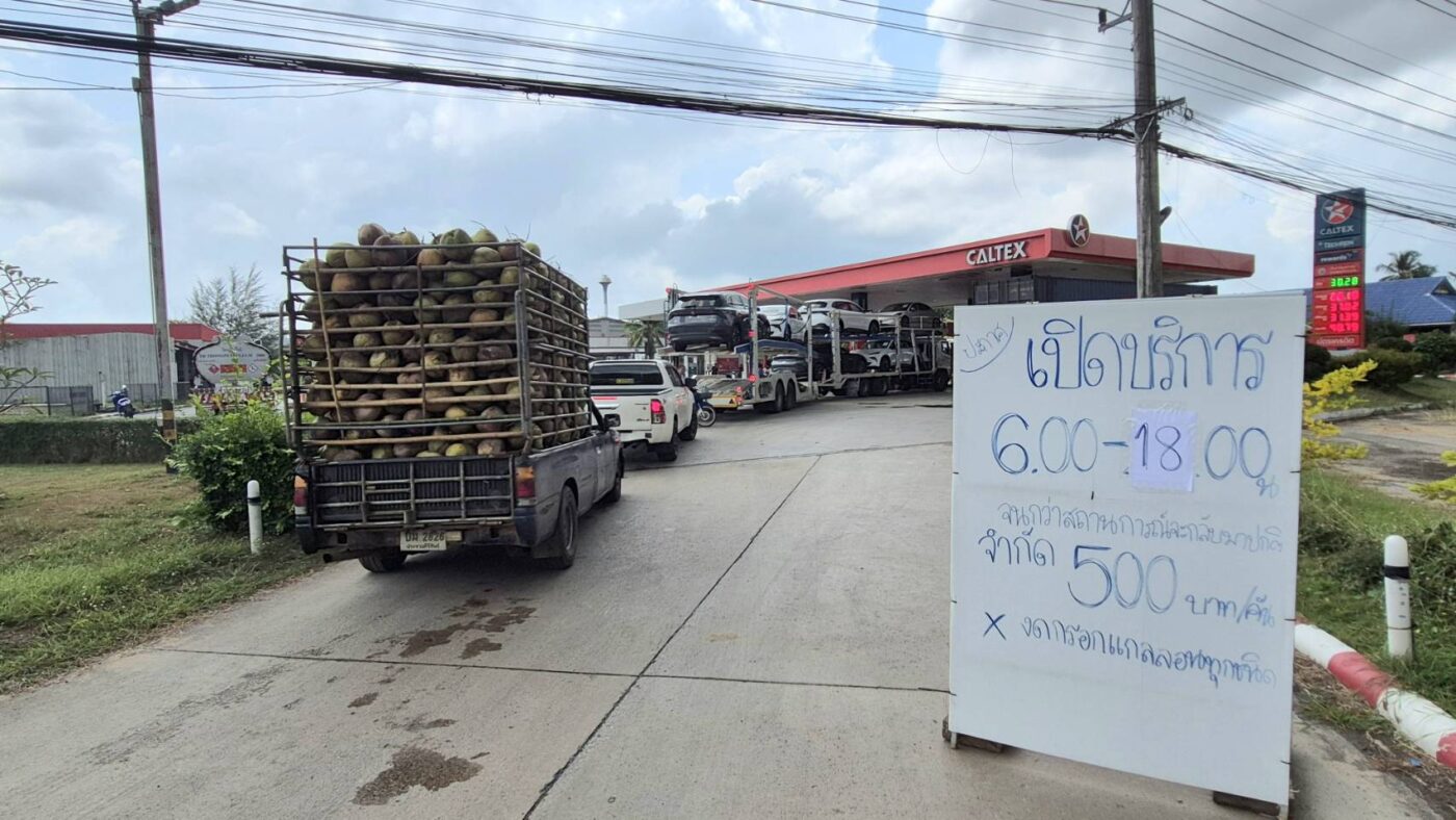 วันที่ 17 มีนาคม 2569 เวลา 10.30 น.ผู้สื่อข่าวรายงานว่า ที่ปั้มน้ำมันคาลเท็กซ์ ของ หจก.ธ.ทองปิโตเลียม ริมถนนเพชรเกษม ฝั่งขาล่องใต้ ช่วงหลัก กม.ที่ 359-360 ตำบลอ่างทอง อำเภอทับสะแก จังหวัดประจวบคีรีขันธ์ ได้เปิดให้บริการเติมนำมันดีเซล หลังทางปั้มเปิดให้บริการให้ชาวบ้าน และชาวสวนรวมถึงรถบรรทุกที่วิ่งลงสู่ภาคใต้เข้ามาให้บริการเติมน้ำมันดีเซล โดยชาวสวนได้นำรถที่ใช้สวนตัว และใช้ขนพืชพลทางการเกษตรเข้ามาต่อคิวเติมน้ำมันจำนวนมาก
