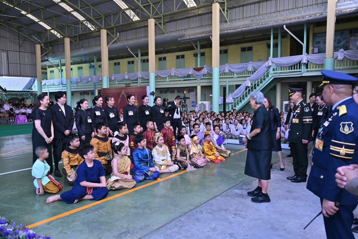 โอกาสนี้ ทอดพระเนตรการแสดงละครร้องของนักเรียน เรื่อง “ท้าวแสนปม” ทอดพระเนตรนิทรรศการผลงานวิชาการนักเรียน ได้แก่ ผลงานรางวัลที่ได้รับระดับชาติ ประจำปีการศึกษา 2568, ผลงานบ้านนักวิทยาศาสตร์น้อย, ผลงานโครงงานเครื่องจ่ายนํ้าอัตโนมัติ, ผลงานกลุ่มสาระการเรียนรู้ศิลปะ, ผลงานกลุ่มสาระการเรียนรู้ภาษาต่างประเทศ (ภาษาจีน) อีกทั้งสาธิตการถักเชือกมงคล และเล่านิทานภาษาอังกฤษ ตลอดจนผลงานกลุ่มสาระการเรียนรู้คณิตศาสตร์ นักเรียนสาธิตคณิตคิดเร็ว ผลงานกลุ่มสาระการเรียนรู้ภาษาไทย และนักเรียนสาธิตการคัดลายมือ