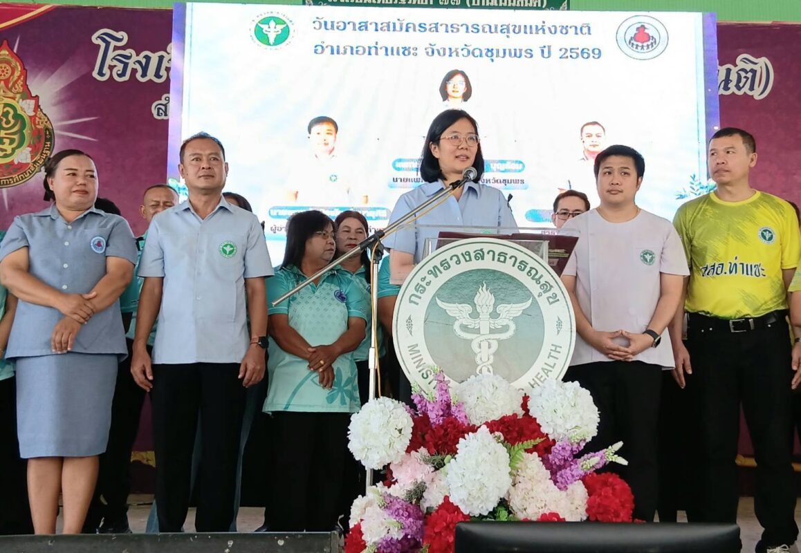 วันที่ 24 มีนาคม 2569 เวลา 10.00 น. แพทย์หญิง เหมือนแพร บุญล้อม นายแพทย์สาธารณสุขจังหวัดชุมพร เป็นประธานเปิดงานวัน อสม. แห่งชาติ อำเภอท่าแซะ ปี 2569 ณ โรงเรียนไทยรัฐวิทยา 77 (บ้านเนินสันติ) เปิดตลาดนัดโดยมี