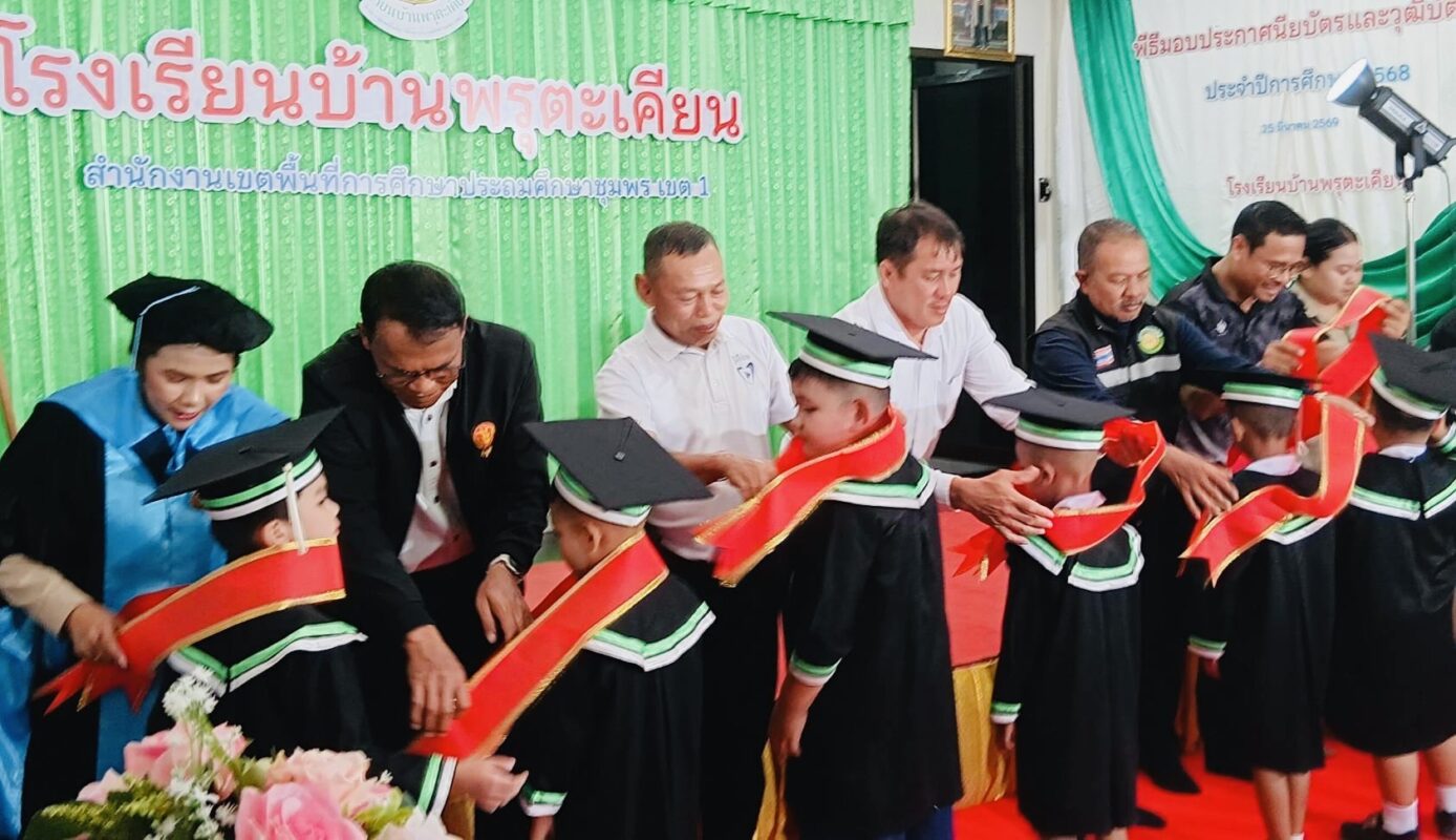 วันที่ 25 มีนาคม 2569 เวลา 09.00 น. นายปัญญา มณีวิหค ประธานคณะกรรมการบริหารสถานศึกษาโรงเรียนบ้านพรุตะเคียน เป็นประธานในพิธีมอบประกาศนียบัตรและวุฒิบัตรบัณฑิตน้อยประจำปีการศึกษา 2568 โดยมีนางสาวจอมขวัญ ศักดิ์ตระกูล ผู้อำนวยการโรงเรียนบ้านพรุตะเคียน ร่วมกับคณะครู คณะกรรมการสถานศึกษา และผู้ปกครอง ร่วมกันจัดขึ้นณอาคาร หลวงพ่อโปร่งโชติโก มีนักเรียนที่สำเร็จการศึกษาจำนวน 54 คน แบ่งเป็น บัณฑิตน้อยจากศูนย์พัฒนาเด็กเล็ก 23 คน บัณฑิตน้อยจากระดับชั้นอนุบาลปีที่ 3 จำนวน 16 คน นักเรียนที่สำเร็จการศึกษาระดับชั้นประถมศึกษาปีที่ 6 จำนวน 15 คน ผู้ปกครองจำนวนมากร่วมแสดง ความยินดีกับบุตรหลานที่จะต้องไปเรียนต่อในระดับที่สูงขึ้น