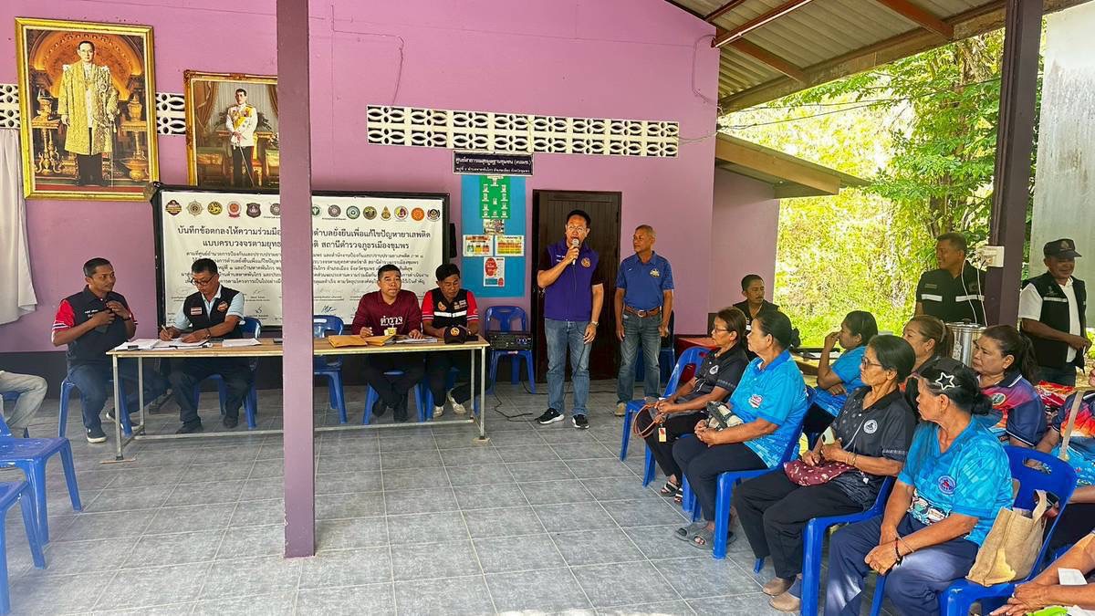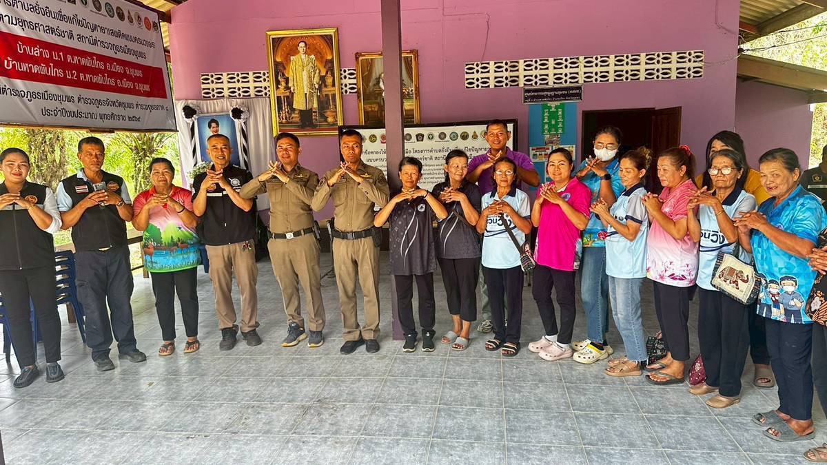 วันที่ 29 มีนาคม 2569 เวลา 09.30 น. – 12.00 น. ภายใต้อำนวยการของ พ.ต.อ.ปัญญา ท้วมศรี ผกก.สภ.เมืองชุมพร,นายเจริญโชค พรหมชุติมา นายอำเภอเมืองชุมพร ได้มอบหมายให้ นายนพพร มีสติ ปลัดอาวุโส อ.เมืองชุมพร, พ.ต.ท.สกฤษชย สุขนิตย์ รอง ผกก.สส.สภ.เมืองชุมพร พ.ต.ท.สุรศักดิ์ พนัสนาชี รอง ผกก.ป.สภ.เมืองชุมพร ,ว่าที่ พ.ต.ท.ประคอง แก้วประสม สวป.(ชส.)ฯ,ร.ต.อ.ฐปนนท์ แดงสกล รอง สวป.ฯ , นางวันเพ็ญ เลขพลการ ผอ.รพ.สต.หาดพันไกร, นายบุญนำ จันทรประนต นายก ฯ อบต.หาดพันไกร, ส.อบต.ม.2 ต.หาดพันไกร/แพทย์ รพ.แพทย์แผนไทยประยุกต์ พร้อมด้วย ชุดปฏิบัติการตำบลยั่งยืน, ชุด ชมส.ฯ และ สายตรวจตำบลหาดพันไกร,สายตรวจตำบลบางลึก ร่วมกับ นายศรัญญู สุดดวง ผญบ ม.1 ต.หาดพันไกร ฯ, ผช.ผญบ.ม.1, นายชานุรัตน์ ฤทธิเกษร ผญบ.ม.2, ผช.ผญบ.ม.2, ประธาน ส.อสม.รพ.สต.หาดพันไกรและ อสม.ม.1,2 ต.หาดพันไกร, ประธานคุ้มและคณะกรรมการคุ้ม ฯ ตามโครงการตำบลยั่งยืนเพื่อแก้ไขปัญหายาเสพติดตามยุทธศาสตร์ชาติ ประจำปีงบประมาณ 2569 ณ ศูนย์หมู่บ้าน ม.2 ต.หาดพันไกร อ.เมือง จ.ชุมพร ได้ร่วมกันประชุมผู้บำบัดและคณะกรรมการฯ/อสม./รพ.สต.ฯ ครั้งที่ 4 เพื่อตรวจหาสารเสพติดและทำกิจกรรมบำบัดกับผู้กล้า จากจำนวน 27 คน มารายงานตัวจำนวน 22 คน พบสารฯ จำนวน 13 คน ไม่พบสาร ฯ จำนวน 9 คน ติดภารกิจ 1 คน, ป่วย 1 คน,ไม่มา 3 คน จะได้ติดตามให้เข้าสู่กระบวนการตามขั้นตอนต่อไป และมีการประชาสัมพันธ์ สื่อออนไลน์ของ ตร.ให้กับผู้เข้าร่วมประชุมเพื่อติดตามข้อมูล และเป็นการสร้างภาพลักษณ์ที่ดีของหน่วยงานต่อไป