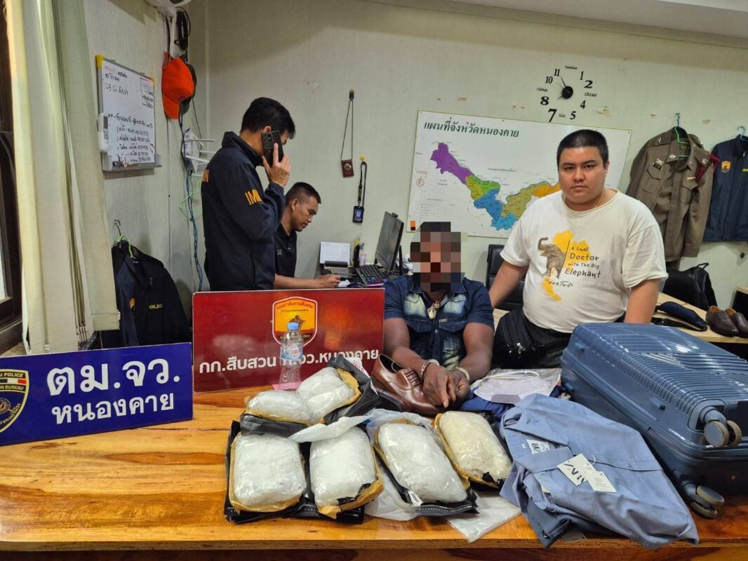 วันที่ 1 เมษายน 2569 เวลา 05.00 น. งานสืบสวน ตม.จว.หนองคาย ออกตรวจท้องที่รับผิดชอบ เมื่อผ่านศาลาข้างทางบริเวณบ้านดงเวร พบชายผิวสีนั่งอยู่และแสดงท่าทางมีพิรุธ จึงได้ขอทำการตรวจสอบ พบว่า ต่างด้าวผิวสี ชื่อ Mr.Desmond สัญชาติไนจีเรีย ในตัวพบเป้สะพายหลัง และกระเป๋าเดินทางแบบลากอีก 1 ใบ มียาเสพติดให้โทษประเภทที่ 1 (ยาไอซ์) จำนวนกว่า 6 กิโลกรัมในกระเป๋าเดินทางแบบลากของผู้ต้องหา จึงทำการยึดของกลางและจับกุมตัวผู้ต้องหา และจะทำการขยายผลหาผู้ร่วมขบวนการคนอื่น ๆ ต่อไป