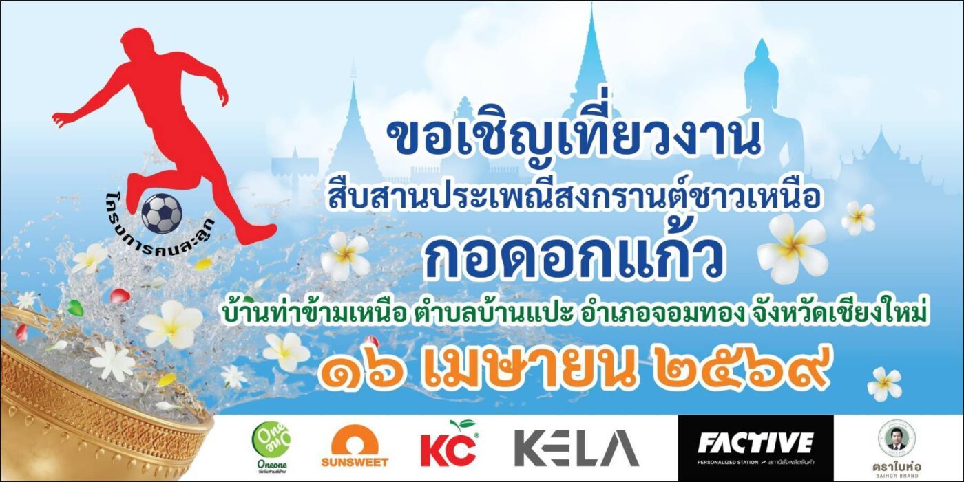 บริษัท ซันสวีท จำกัด (มหาชน) ผู้ผลิตและจำหน่ายข้าวโพดหวานแปรรูปและผลิตภัณฑ์เกษตรแปรรูป ภายใต้ตราสินค้า “KC” เดินหน้ากิจกรรมเพื่อสังคม ร่วมสนับสนุนงาน “สืบสานประเพณีสงกรานต์ชาวเหนือ กอดอกแก้ว” ประจำปี 2569 ณ บ้านท่าข้ามเหนือ ตำบลบ้านแปะ อำเภอจอมทอง จังหวัดเชียงใหม่ เพื่อเป็นการอนุรักษ์วัฒนธรรมท้องถิ่นและส่งเสริมความสัมพันธ์อันดีในชุมชน