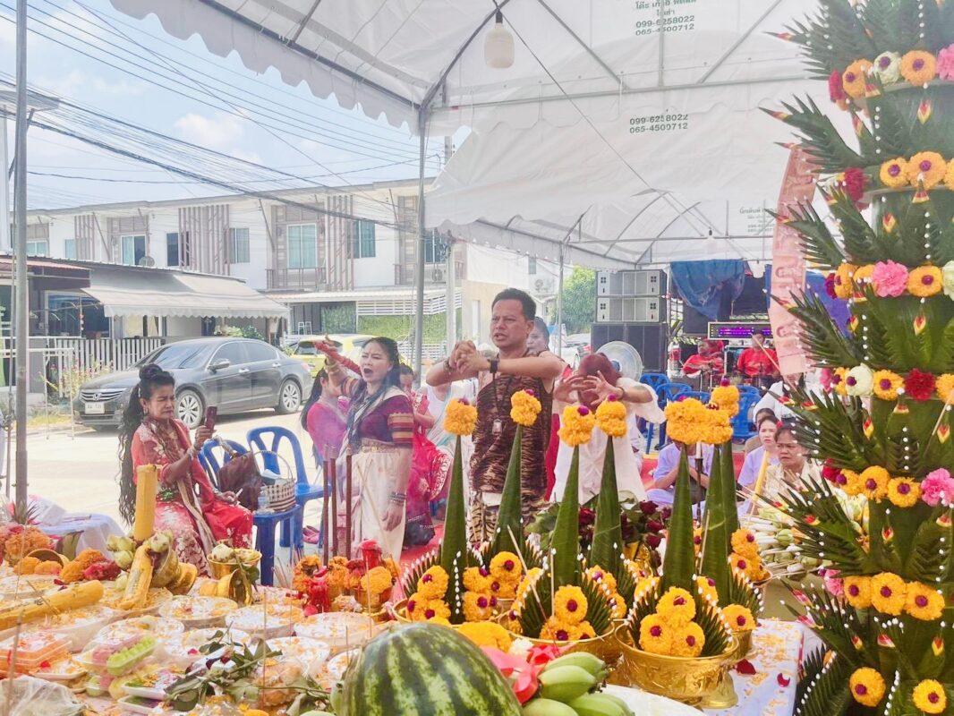 วันที่ 9 เมษายน 2569 เวลา 09.00 น. ผู้สื่อข่าวรายงานว่า ที่ สำนักสักยันต์ปู่เจ้าสมิงพราย สายไหม 56 เลขที่ 9/384 หมู่บ้านพฤกษาไพร์ม สายไหม 56 กรุงเทพมหานคร อาจารย์พงษ์สิทธิ์ สำนักสักยันต์ปู่เจ้าสมิงพราย สายไหม 56 ได้จัดพิธีไหว้ครูบูรพาจารย์ ประจำปี 2569 โดยมี อาจารย์หมอตี๋ปากน้ำ (โหราผู้ประกอบพิธี) พร้อม คณะศิษย์ยานุศิษย์ร่วมพิธีเป็นจำนวนมาก ภายในพิธีบวงสรวงไหว้ครู ขณะกล่าวโองการเชิญเทพ มีคณะศิษย์ยานุศิษย์ เหมือนมีองค์ลงหน้าตาท่าทางขลึงขัง ร่ายรำสวยสง่า ทุกๆปีจะจัดงานใหญ่ๆแบบนี้ตลอดทุกๆปี