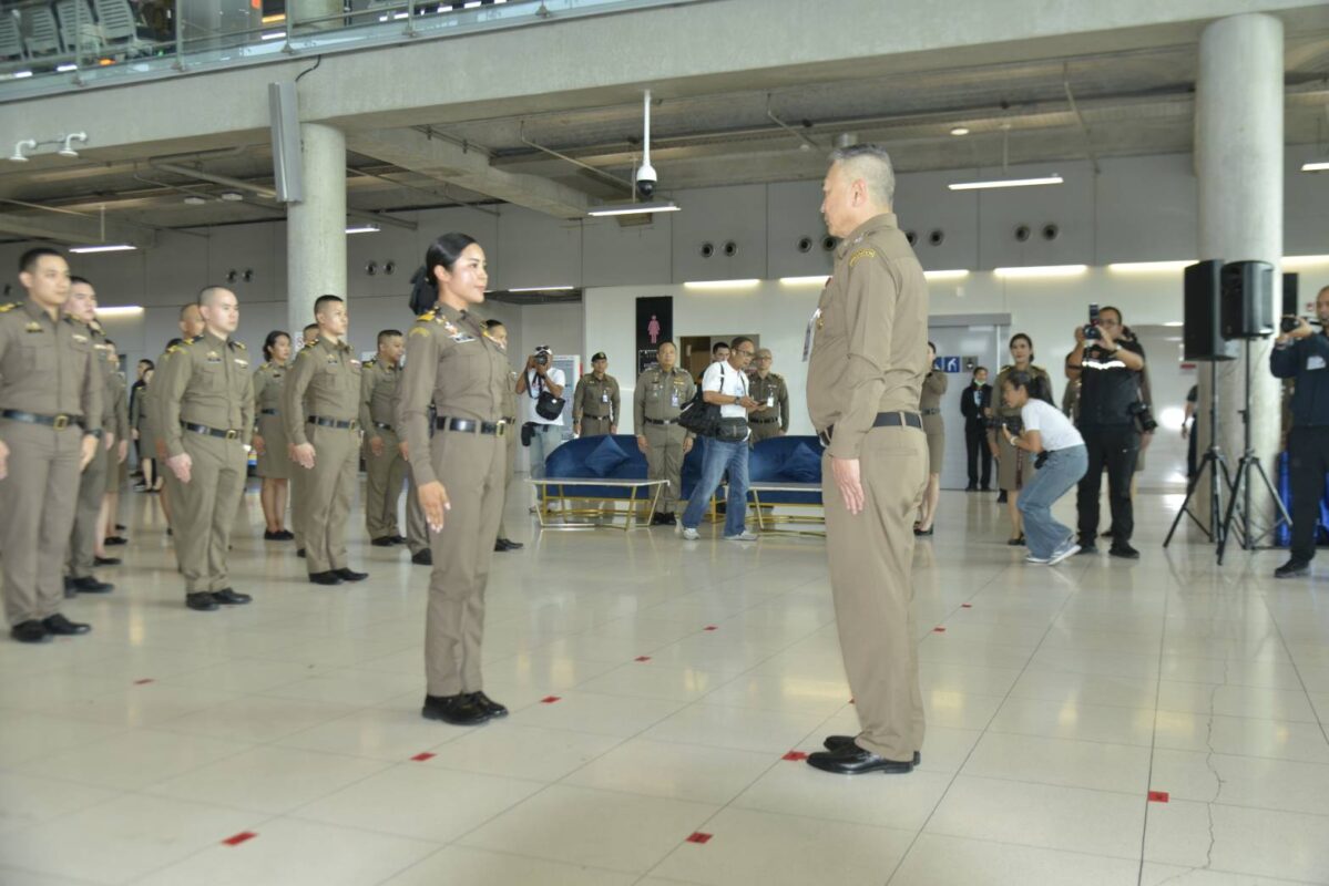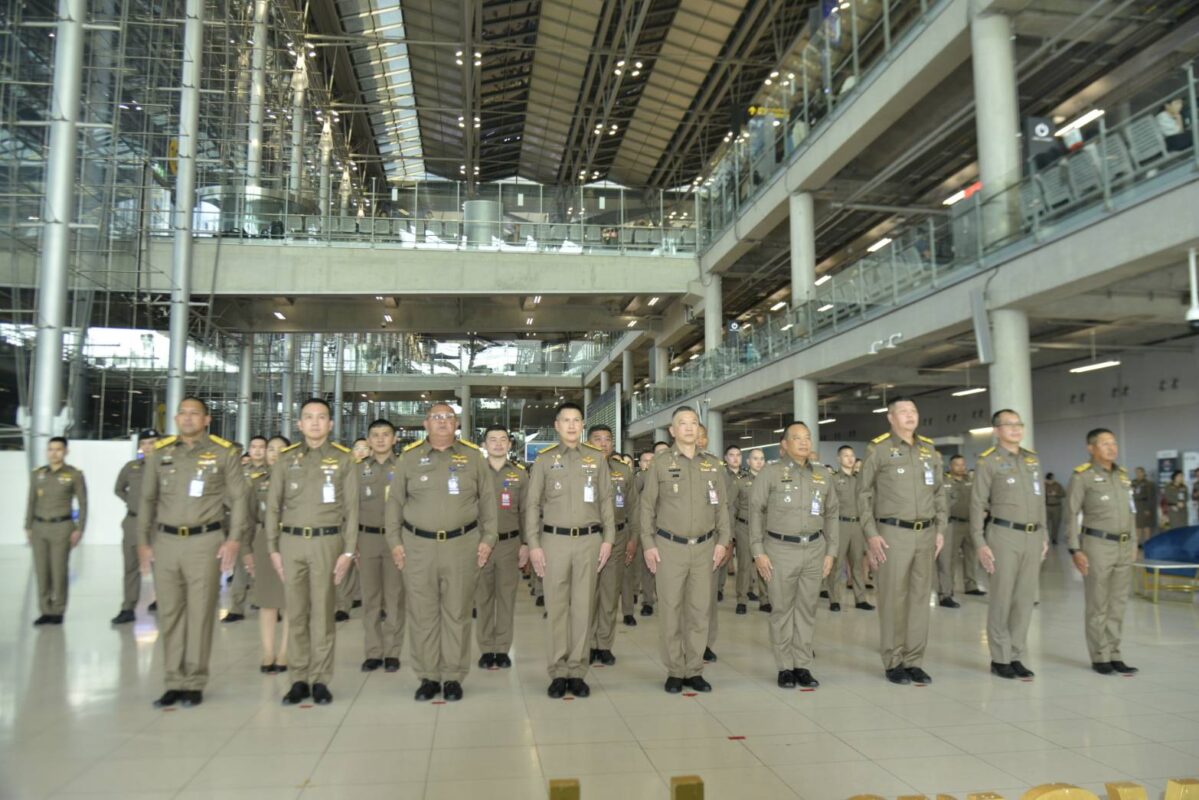 พล.ต.ท.ภาณุมาศ บุญญลักษม์ ผบช.สตม. พร้อมด้วย พล.ต.ต.เชิงรณ ริมผดี รอง ผบช.ศ.ปฏิบัติราชการ สตม. และ พล.ต.ต.คธาธร คำเที่ยง ผบก.ตม.2 ร่วมปล่อยแถวเจ้าหน้าที่ตรวจคนเข้าเมือง ณ ท่าอากาศยานสุวรรณภูมิ เพื่อเตรียมความพร้อมในการอำนวยความสะดวกด้านพิธีการเข้าเมืองแก่ผู้เดินทางในช่วงเทศกาลสงกรานต์ 2569