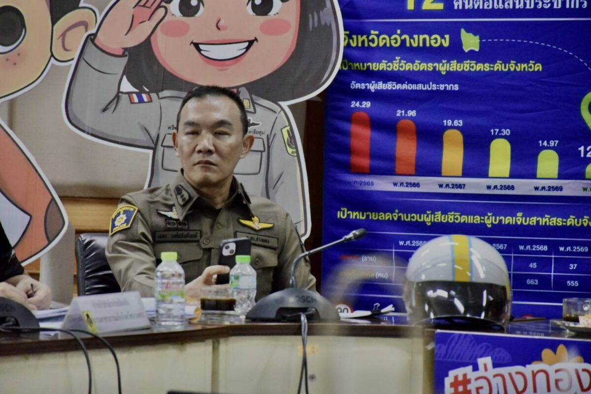 วันที่ 11 เมษายน พ.ศ.2569 เวลา 09.30 น. ณ ห้องประชุมโพธิ์ทอง ชั้น 2 ศาลากลางจังหวัดอ่างทอง ต.บางแก้ว อ.เมืองอ่างทอง จ.อ่างทอง พล.ต.ต.กิตติ สกุณี ผู้บังคับการตำรวจภูธรจังหวัดอ่างทอง ประธานการประชุมศูนย์ปฏิบัติการป้องกันและลดอุบัติเหตุทางถนน ช่วงเทศกาลสงกรานต์ พ.ศ.2569 จังหวัดอ่างทอง ซึ่งเป็นการประชุมวันที่ 1 ของการประชุมฯ พร้อมด้วย พ.ต.อ.เมธา วงศ์อนันต์นนท์ รองผู้บังคับการตำรวจภูธรจังหวัดอ่างทอง และหัวหน้าส่วนราชการ ผู้แทนหน่วยงาน และภาคีเครือข่ายด้านการป้องกันและลดอุบัติเหตุที่เกี่ยวข้อง เข้าร่วมประชุมอย่างพร้อมเพรียง