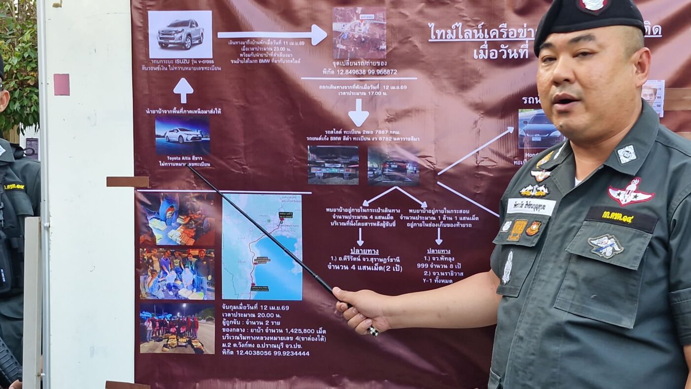 โดยพฤติการณ์ในการจับกุม ได้มีผู้ต้องหารายที่ 1 ไม่ทราบชื่อขับรถยนต์เก๋ง Toyota สีขาว นำยาบ้ามาส่งให้ในพื้นที่ กทม ก่อนมีรถยนต์กระบะ สีบรอนซ์เงิน ไม่ทราบชื่อคนขับและไม่ทราบหมายเลขทะเบียน มารับยาบ้า ไป ก่อนวันที่ 11เมษ.ได้นำยาบ้ามาเปลี่ยนถ่ายใส่ รถยนต์เก๋ง BMW สีดำ ที่มากับรถสไลด์ ในพื้นที่ชุมชนบ้านหนองตะพด อำเภอชะอำ จังหวัดเพชรบุรี โดยมีรถยนต์เก๋ง Honda สีดำ ป้ายทะเบียนจังหวัดเพชรบุรี โดยมีนายธนกฤต หรือเท่ เป็นรถนำทางดูลาดลาวเจ้าหน้าที่ พร้อมด้วยรถยนต์กระบะ Toyota สีดำ 4 ประตู ป้ายทะเบียน จังหวัดสุราษฎร์ธานี โดยมี ภัทรพล หรือโดม เป็นคนขับ คอยปิดท้าย ดูลาดลาวเจ้าหน้าที่. โดยเจ้าหน้าที่ได้รับแจ้งจากสายลับว่า จะมียาเสพติดล็อตใหญ่ลงลำเลียงลงสู่ ภาคใต้จึงติดตามหาข่าวจนทราบว่ารถคันดังกล่าวอยู่ใน พื้นที่อำเภอชะอำ จังหวัดเพชรบุรี จึงทำการสืบสวนและติดตามรถคันดังกล่าว มาถึงในพื้นที่หมู่ 2 ตำบลวังพง อำเภอปราณบุรี จังหวัดประจวบคีรีขันธ์ ก่อนเปิดปฏิบัติการ เข้าตรวจค้นจับกุมรถเป้าหมายทั้งหมด. ก่อนพบยาบ้าอยู่ในกระเป๋าเดินทาง วางอยู่เบาะนั่งด้านหลังคนขับ จำนวน 400,000 เม็ด. และยาบ้าอยู่ในกระสอบ จำนวน 1,100,000 เม็ด. จะกันสอบสวนผู้ต้องหา รับ สารภาพว่า จะนำยาบ้า ไปส่งที่อำเภอคีรีรัฐ จังหวัดสุราษฎร์ธานี จำนวน 400,000 เม็ด และนำไปส่งที่จังหวัดพัทลุง และจังหวัดนราธิวาส รวม 1,100,000 ก่อนมาถูกจับกุมได้ดังกล่าว ส่วนนายเท่ และ นายโดม หลังเกิดเหตุได้หลบหนีอยู่ในระหว่างการสืบสวนและติดตามตัวมาดำเนินคดี