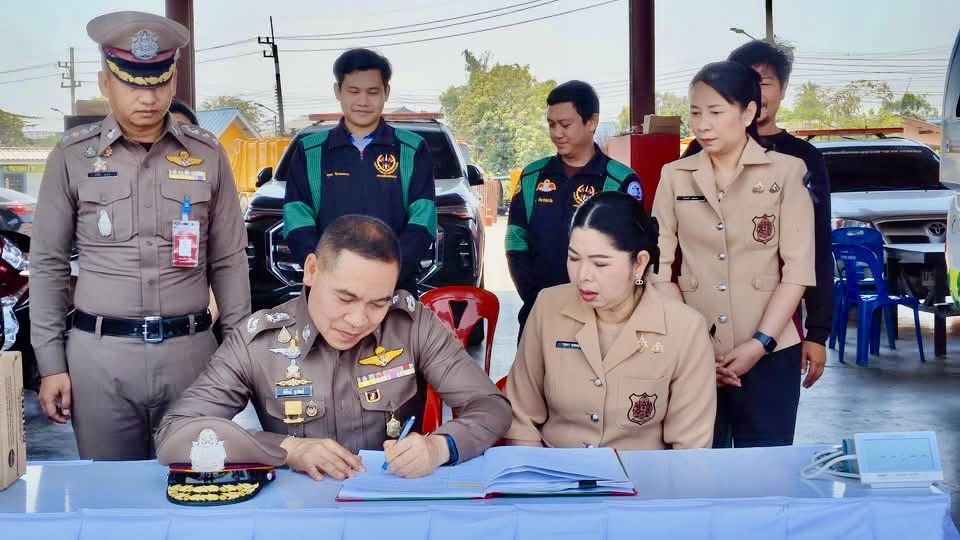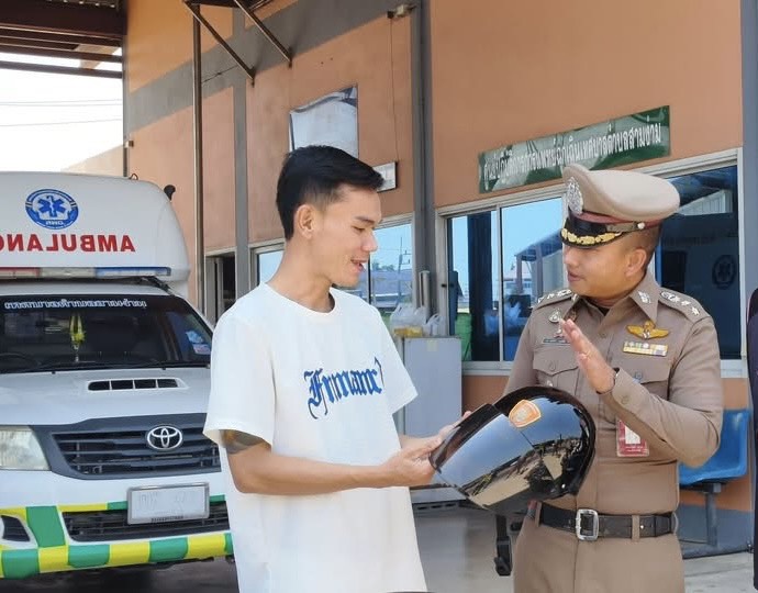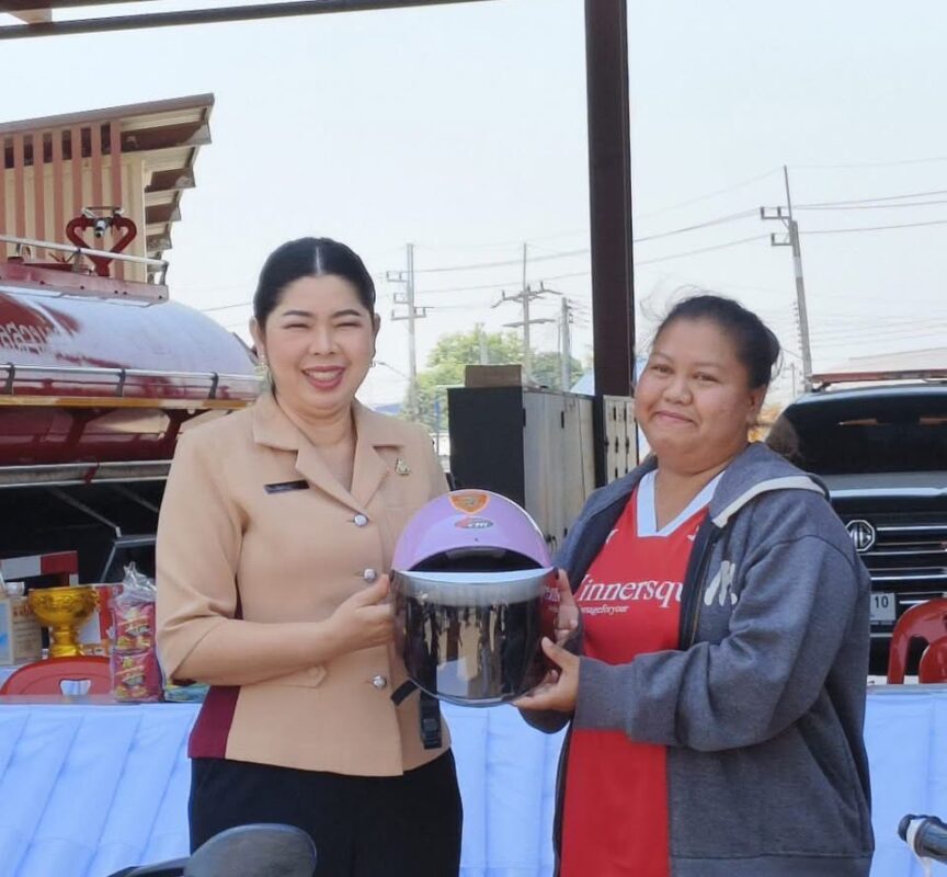 จึงได้มอบเครื่องดื่ม อาหารว่างและสิ่งของเพื่อบำรุงขวัญและกำลังใจให้แก่เจ้าหน้าที่ที่ปฏิบัติหน้าที่ในช่วงเทศกาลสงกรานต์ 2569 พร้อมกันนี้ได้แจกหมวกนิรภัยตาม “โครงการ 1 หมวก 1 น้ำใจ พิทักษ์ภัยทางถนน (จับ ปรับ แจก)” ให้แก่ประชาชนที่ขับขี่รถจักรยานยนต์สัญจรผ่านมาบริเวณจุดบริการประชาชนเพื่อลดความสูญเสียจากอุบัติเหตุทางถนน