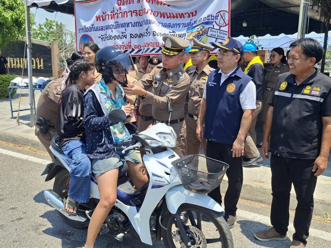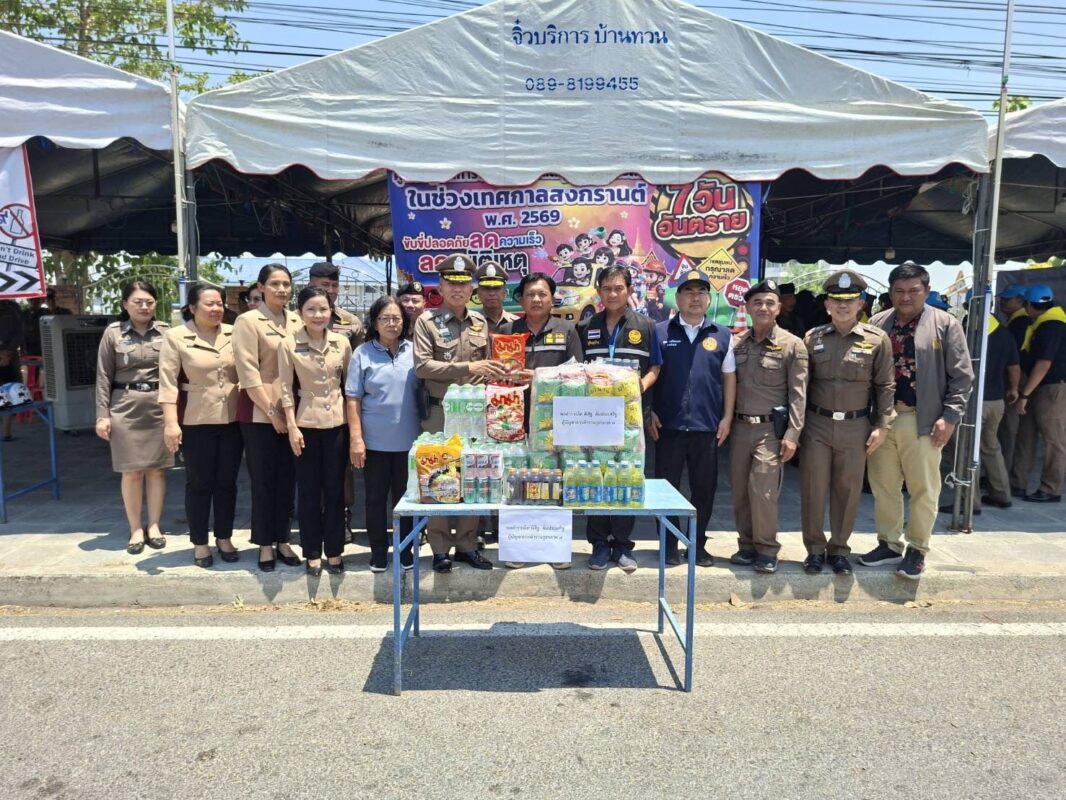 พร้อมกันนั้น ได้ตรวจเยี่ยมจุดบริการประชาชน มอบ น้ำ และเครื่องดื่มชูกำลัง ของอุปโภคบริโภค ให้กับจุดตรวจบริการประชาชน อ.พนมทวน จ.กาญจนบุรี เพื่อเป็นกำลังใจในการปฏิบัติหน้าที่ ป้องกันอุบัติเหตุบนท้องถนน และดูแลบริการ ประชาชนช่วงเทศกาลสงกรานต์