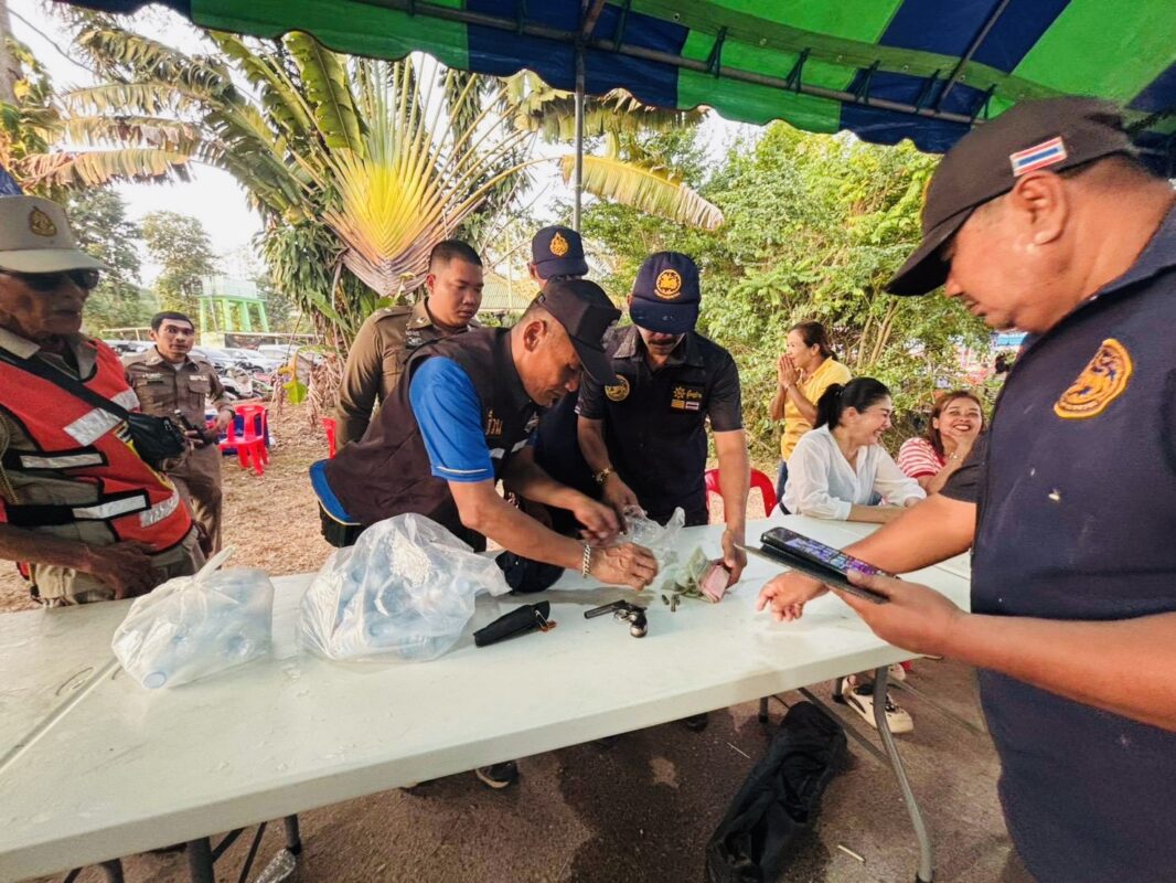 ในระหว่างการตรวจค้นอย่างเข้มงวด เจ้าหน้าที่ชุดปฏิบัติการนำโดย นายพัฒนพงศ์ ละออย้อย และนายจาเรศ ก๋งชิน ได้สังเกตเห็นชายต้องสงสัย อายุประมาณ 30 ปี มีท่าทีลุกลี้ลุกลนพยายามเลี่ยงจุดตรวจ ทันทีที่เจ้าหน้าที่ขอตรวจค้นกระเป๋าสะพายใบเล็ก ความจริงก็ปรากฏ! อาวุธปืนพกสั้นขนาด .38 พร้อมกระสุนเต็มอัตราศึก 6 นัด โดยมี 1 นัดถูกใส่ไว้ในรังเพลิง พร้อมลั่นไกได้ทุกวินาที!