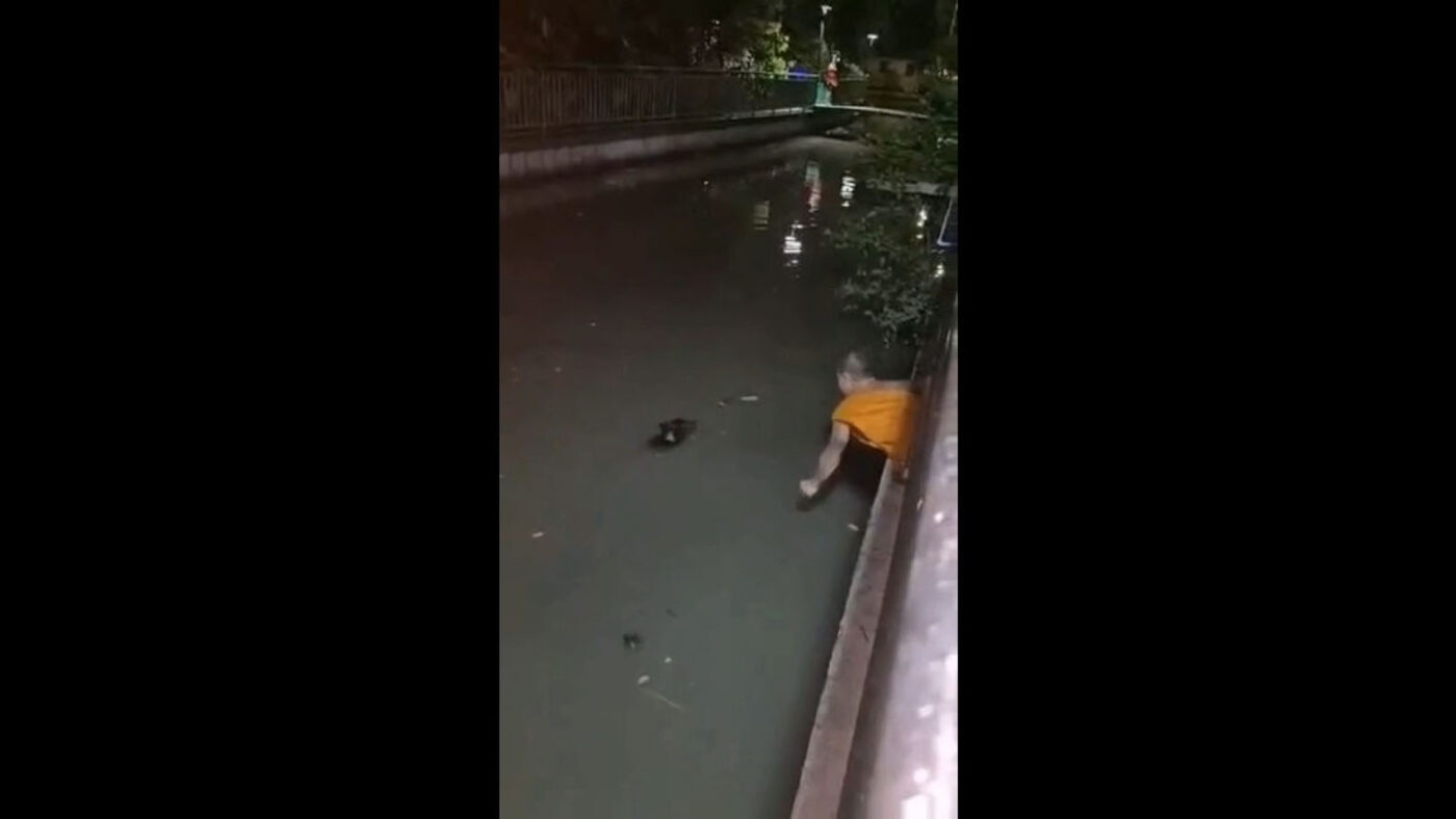 พระสราวุธ สนฺตจิตโต (พระไผ่) อายุ 34ปี (พระที่พบแล้วช่วยเหลือ) เผยว่า ช่วงเวลาประมาณสองทุ่มอาตมาได้นั่งอยู่บริเวณหลังกุฎิของวัดบางหญ้าแพรก ซึ่งหลังกุฎิติดกับลำคลองที่เชื่อมต่อกับแม่น้ำเจ้าพระยา ขณะเดียวกันได้มีญาติโยมตะโกนมาบอกกับอาตมาว่า มีหมาตกน้ำลอยคอมา ใกล้ถึงกุฎิของหลวงพี่ อาตมาจึงโผล่หน้าไปดูและพบว่ามีสุนัขตัวสีดำลอยคออยู่บริเวณกลางคลอง สภาพน่าจะหมดแรง คาดว่าน่าจะลอยมาไกลกว่าจะมาถึงบริเวณนี้ ซึ่งถือว่าเป็นความโชคดีของสุนัขตัวดังกล่าว เพราะว่าสุนัขตัวดังกล่าวได้ลอยมาติดบริเวณริมเขื่อน จึงทำให้อาตมายื่นแขนออกไปคว้าตัวของสุนัขดังกล่าวได้ ซึ่งหากสุนัขตัวดังกล่าวลอยอยู่กลางคลอง ก็จะยากที่จะช่วยเหลือ อาตมาก็เตรียมที่จะกระโดดลงไปช่วย หลังจากช่วยและนำขึ้นจากน้ำได้แล้ว พบว่าเป็นสุนัขเพศผู้ อายุค่อนข้างมาก ไม่มีปลอกคอ หากผู้ใดมีจิตที่จะทำบุญ หรือเป็นเจ้าของ สามารถติดต่อหลวงพี่ไผ่ วัดบางหญ้าแพรก เพราะอาตมาได้ช่วยชีวิต จากความตายแล้ว