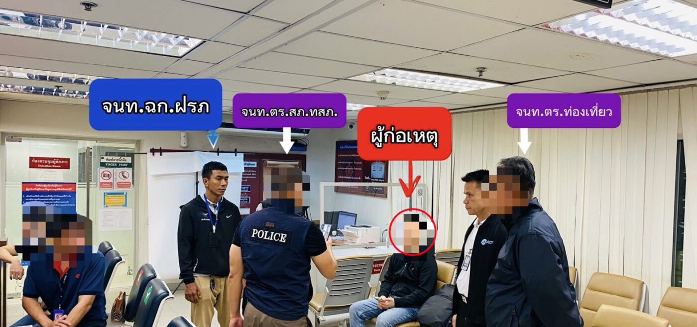 วันที่ 13 เมษายน 2569 เวลา 15.20 น. ศูนย์รักษาความปลอดภัยท่าอากาศยานสุวรรณภูมิ ได้รับแจ้งจากเจ้าหน้าที่สายการบิน ว่ามีผู้โดยสารชาวจีนอายุ 45 ปี ซึ่งเดินทางมาจากเวียงจันทน์แจ้งทรัพย์สินสูญหายเป็นเงินสดจำนวน 16,020 บาท ระหว่างโดยสารบนอากาศยาน ซึ่งลูกเรือของเที่ยวบินดังกล่าวให้ข้อมูลเพิ่มเติมว่า พบบุคคลต้องสงสัยมีพฤติกรรมรื้อค้นสัมภาระบริเวณช่องเก็บสัมภาระเหนือศีรษะ ทั้งนี้ภายหลังได้รับแจ้งเหตุดังกล่าว ศูนย์รักษาความปลอดภัยท่าอากาศยานสุวรรณภูมิ จึงได้ประสานเจ้าหน้าที่ชุดเฉพาะกิจฝ่ายรักษาความปลอดภัย ทสภ. (ฉก.ฝรภ.ทสภ.) และสถานีตำรวจภูธรท่าอากาศยานสุวรรณภูมิ (สภ.ทสภ.) พร้อมด้วยกองกำกับการ 3 กองบังคับการตำรวจท่องเที่ยว 1 เข้าพื้นที่บริเวณหน้า Gate C6 เพื่อเข้าตรวจสอบเหตุการณ์ดังกล่าวทันทีเมื่ออากาศยานเดินทางถึง ทสภ. กระทั่งพบบุคคลต้องสงสัย จึงได้แสดงตัวเข้าทำการตรวจค้นและควบคุมตัว จากการตรวจค้นพบเงินสดจำนวน 16,020 บาท ซุกซ่อนอยู่ภายในกระเป๋าคาดอกสีดำของผู้ต้องสงสัย ซึ่งเป็นชายสัญชาติจีน อายุ 41 ปี ซึ่งโดยสารมากับเที่ยวบินเดียวกัน โดยผู้ต้องสงสัยให้การรับสารภาพว่าเป็นผู้ก่อเหตุจริง เจ้าหน้าที่จึงได้ควบคุมตัวส่งพนักงานสอบสวน สภ.ทสภ. เพื่อดำเนินคดีตามกฎหมายต่อไป