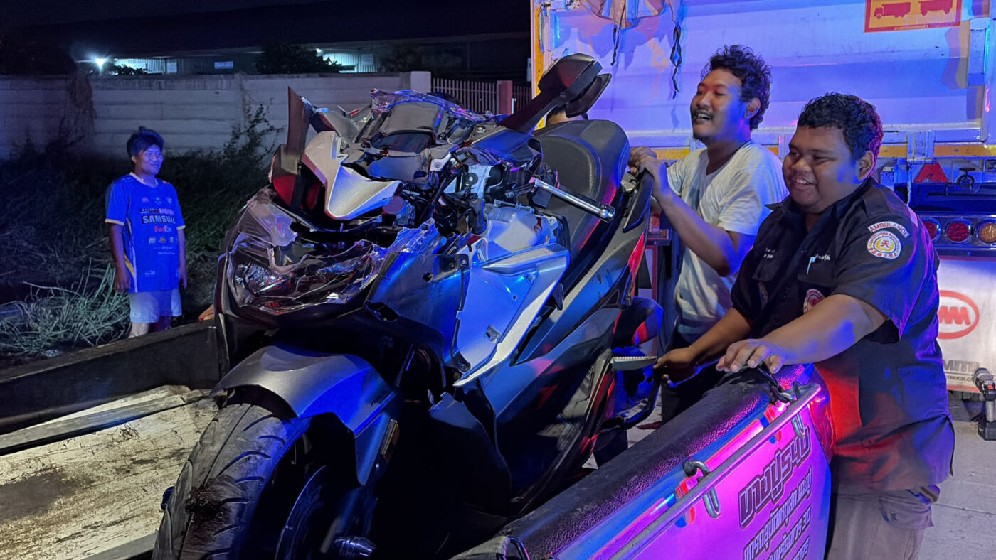 จากการสอบถามนายกานต์ อายุ 35 ปี คนขับรถพ่วง เล่าว่า ก่อนเกิดเหตุตนได้ขับรถมาจอดริมทางจุดดังกล่าวเพื่อนอนพักสายตาระหว่างรอเวลาเข้าไปขึ้นสินค้าภายในโรงงาน ในขณะที่กำลังหลับสนิทอยู่นั้น จู่ๆ ก็ต้องตกใจตื่นเพราะได้ยินเสียงดัง “ปัง” สนั่นมาจากทางท้ายรถ จึงรีบเปิดประตูลงมาดูและต้องช็อกเมื่อพบว่ามีรถจักรยานยนต์ขี่มาชนท้ายจนคนขับนอนแน่นิ่งจมกองเลือดอยู่ จึงรีบโทรแจ้งเจ้าหน้าที่ให้มาช่วยเหลือ