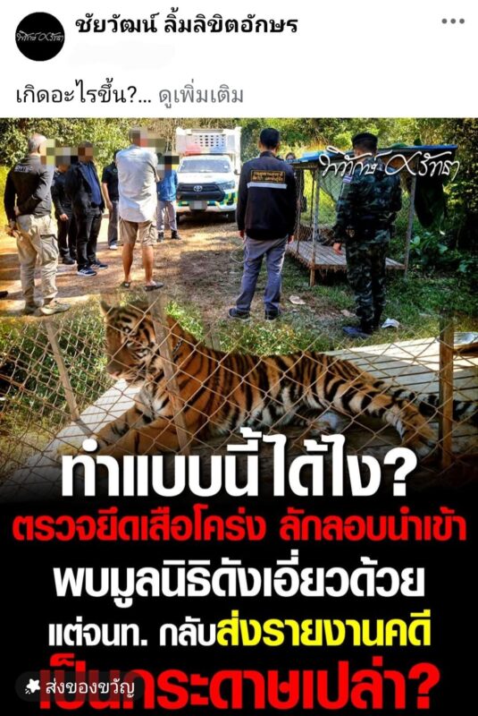 วันที่ 18 ธันวาคม 2568 จากกรณีเพจเฟสบุ๊ค ชัยวัฒน์ ลิ้มลิขิตอักษร ๆได้โพส์ข้อความว่า ผมเพิ่งพบรายงานเหตุการณ์ลักลอบนำเข้าเสือโคร่ง เพศเมีย อายุ1ปีข้ามจากฝั่งพม่า บริเวณฐานปฏิบัติการหกพันไร่ อ.สังขละบุรี จ.กาญจนบุรี แต่กลับมีสิ่งที่ไม่สมควรเกิดขึ้นตามมาด้วยพฤติกรรมของเหตุการณ์ มีรายงานว่าพบชาวต่างชาติรายหนึ่ง มีชื่อเป็นเจ้าของมูลนิธิเกี่ยวกับสัตว์ในพื้นที่ จ.เพชรบุรี เกี่ยวข้องกับการลักลอบนำเข้าสัตว์ครั้งนี้ ล่าสุดนายเอ็ดวิน วีค ที่ปรึกษาคณะกรรมการมูลนิธิเพื่อนสัตว์ป่า จ.เพชรบุรี ได้เปิดเผยข้อมูลว่า ในวันเกิดเหตุเป็นวันที่ 16 ธันวาคมช่วงเย็น ได้มีทหารกะเหรี่ยงknu ประสานเข้ามาแจ้งว่าต้องการให้ทางมูลนิธิฯช่วยเหลือลูกเสือจำนวน 1ตัว จนตนทราบว่ากะเหรี่ยงknuมาถึงพื้นที่จริงในวันนั้น จึงเดินทางไปดูในพื้นที่อำเภอสังขละบุรี จังหวัดกาญจนบุรี ในวันที่ 17 ธ.ค.ช่วงเช้า จึงเดินทางไปถึงใกล้สถานที่ที่นัดกันไว้ ติดกับชายแดนมากเกิน ไป ก่อนที่ตนจะแจ้งว่าให้ย้ายจุดมาพบกันที่ใกล้กับฐานปฏิบัติการหกพันไร่ของเจ้าหน้าที่ทหารในพื้นที่ จากนั้นประมาณครึ่งชั่วโมงรถของกะเหรี่ยง knu ได้ขับเข้ามาถึงจุดใกล้ฐานทหาร โดยที่บริเวณท้ายกระบะมีเสือมาด้วย 1 ตัวอยู่ในกรง ตนจึงเข้าไปดูตรวจสอบอาการพบว่าเสือตัวดังกล่าว ไม่มีอาการป่วยและไม่มีอันตรายใดๆถึงชีวิต แต่เสือต้องมีเอกสารแต่กะเหรี่ยง knu ไม่มีเอกสารมาแสดง ตนจึงประสานเจ้าหน้าที่ชุดเฉพาะกิจของทหาร กรมการปกครองในพื้นที่ เจ้าหน้าที่กรมอุทยาน เจ้าหน้าที่เขตรักษาพันธุ์สัตว์ป่า […]