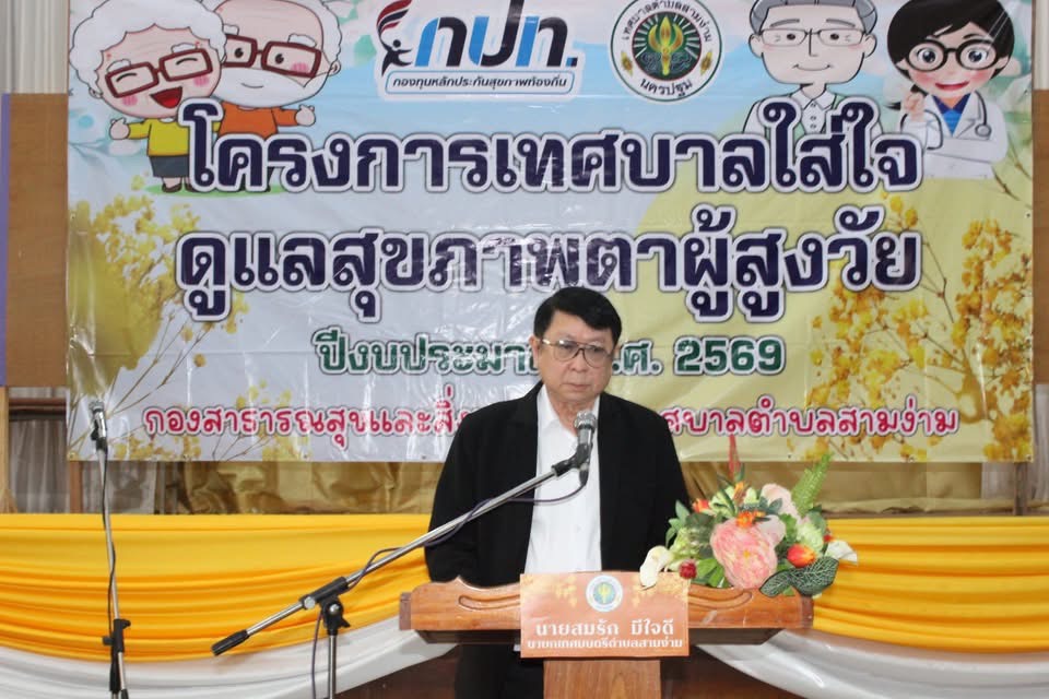 วันที่ 18 ธันวาคม 2568 เวลา 08.30 น. ณ หอประชุมอำเภอดอนตูม เทศบาลตำบลสามง่าม โดย กองทุนหลักประกันสุขภาพเทศบาลตำบลสามง่าม ซึ่งมี นายภูวเดช จันทร์สนธิ ผู้อำนวยการกองสาธารณสุขและสิ่งแวดล้อม จัดโครงการเทศบาลใส่ใจ ดูแลสุขภาพตาผู้สูงอายุ ประจำปีงบประมาณ 2569 ทั้งนี้ นายสมรัก มีใจดี นายกเทศมนตรีตำบลสามง่าม เป็นประธานในการจัดโครงการ พร้อมด้วย ผศ.ดร. อภิชา พรเจริญกิจกุล นายอานนท์ มีใจดี รองนายกเทศมนตรีตำบลสามง่าม นายจิราวัฒน์ ปึงสุขสมบูรณ์ ประธานสภาเทศบาล สมาชิกสภาเทศบาล ปลัดเทศบาล หัวหน้าสำนักปลัดเทศบาล หัวหน้าฝ่ายราชการ และพนักงานเทศบาล เข้าร่วมโครงการ โดยมีการส่งมอบแว่นตาให้กับผู้สูงอายุที่เข้าร่วมโครงการ สำหรับการจัดโครงการเทศบาลใส่ใจ ดูแลสุขภาพตาผู้สูงอายุ ประจำปีงบประมาณ 2569 ครั้งนี้ มีวัตถุประสงค์เพื่อแก้ไขปัญหาการมองเห็นของผู้สูงอายุในเขตเทศบาล ด้วยการตรวจคัดกรองสุขภาพตา, ตรวจวัดสายตา, และตัดประกอบแว่นสายตา รวมถึงส่งต่อผู้ป่วยไปรับการรักษากับแพทย์เฉพาะทาง ซึ่ง ในเขตเทศบาลตำบลสามง่ามมีผู้สูงอายุที่ได้เข้าร่วมโครงการ จำนวน […]