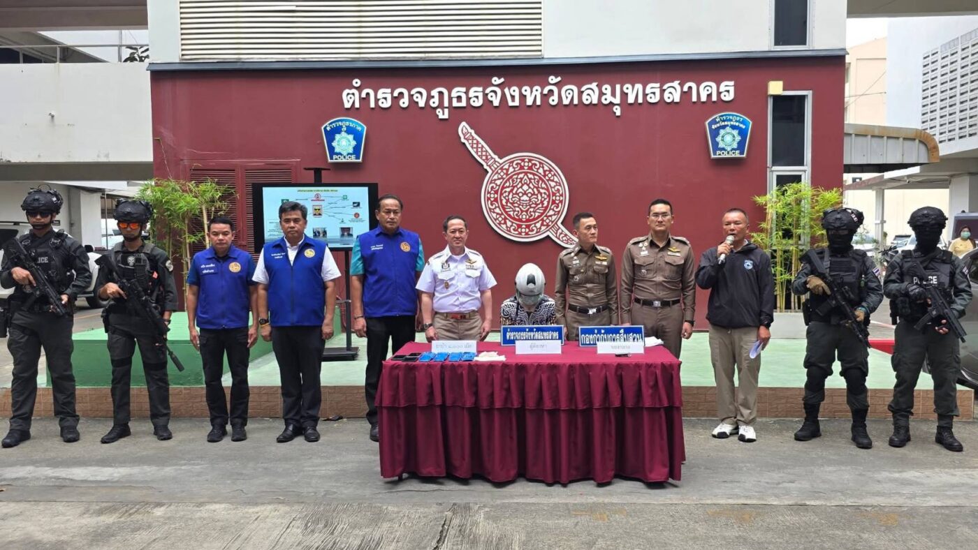 วันที่ 3 ตุลาคม 2568 ที่บริเวณลานหน้า สภ.อ.เมือง จ.สมุทรสาคร ภายใต้การนำของพล.ต.ต.ธีระเดช อธิภัคกุล ผบก.ภ.จังหวัดสมุทรสาคร พร้อมด้วย พ.ต.ท.ไชยภูมิ ฉลองภูมิ รอง ผกก.สส.ภ.จว.สมุทรสาครและคณะ ได้ร่วมแถลงข่าวในผลการจับกุมผู้ต้องหาลักลอบค้ายาเสพติด (ยาบ้า) คือ นายชัชวาล หรือชัช อายุ 39 ปี ได้พร้อมยาบ้าจำนวน 4,000 เม็ด และยาเคตามีนประมาณ 13.7 กรัม, อาวุธปืนปากกา จำนวน 1 กระบอก, อาวุธปืนยาวอัดลม 1 กระบอก พร้อมยึดมือถือรวม 3 เครื่อง และรถยนต์เก๋งยี่ห้อมาสด้า 2 สีเทา เลขทะเบียน 8 กท 1034 กรุงเทพฯ หลังจากสืบทราบว่า จะมีผู้ค้ายาเสพติดนัดส่วมอบกันที่บริเวณริมถนนหน้าร้านสะดวกซื้อ ตรงข้ามโรงเรียนวัดช่องลม ม.7 ต.ท่าจีน อ.เมืองฯ ก่อนจะจึงวางแผนในการจับกุม ณ […]