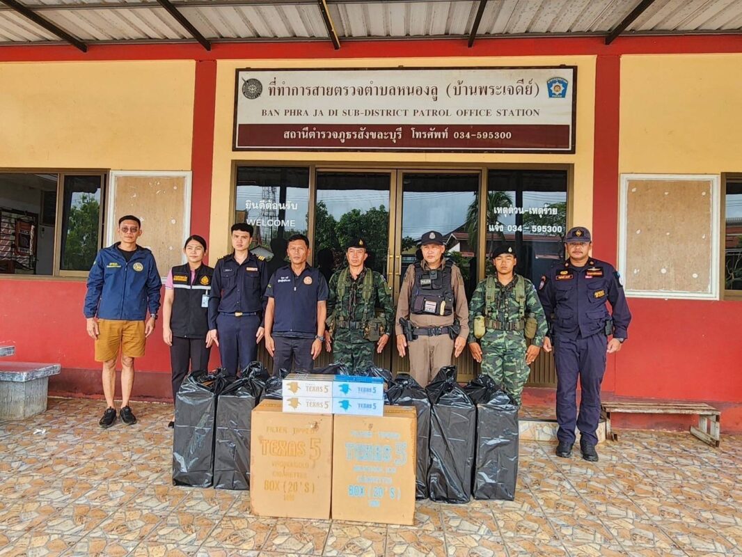 วันที่ 7 ตุลาคม 2568 พลตรี ณัฏฐพงศ์ อัศวินวงศ์ ผู้บัญชาการกองพลหารราบที่ 9 ในฐานะ ผู้บัญชาการกองกำลังสุรสีห์ ร่วมบูรณาการกับ นายอธิสรรค์ อินทร์ตรา ผู้ว่าราชการจังหวัดกาญจนบุรี เปิดเผยว่า ได้รับแจ้งจากแหล่งข่าวในพื้นที่ ว่าจะมีการลักลอบนำบุหรี่หนีภาษี จากบริเวณชายแดน จ.กาญจนบุรี เข้ามายังพื้นที่ตอนใน จึงได้สั่งการให้ พันเอก พรรณศักย์ เพรียวพานิช ผู้บังคับการกรมทหารราบที่ 29 ในฐานะ ผู้บังคับหน่วยเฉพาะกิจลาดหญ้า กองกำลังสุรสีห์ พร้อมด้วย พันเอก ปิยะเณศร์ ภัทรศาศวัตวงษ์ รองผู้บังคับหน่วยเฉพาะกิจลาดหญ้า กองกำลังสุรสีห์ ร่วมกับ กองร้อยตำรวจตระเวนชายแดนที่ 134 สภ.สังขละบุรี และฝ่ายปกครอง อำเภอสังขละบุรี ทำการลาดตระเวนเฝ้าตรวจเพื่อสกัดกั้นสิ่งผิดกฎหมายไม่ให้เข้าไปยังพื้นที่ตอนใน ต่อมาเวลา 14.00 น. ขณะที่เจ้าหน้าที่เจ้าหน้าที่กำลังลาดตระเวนเฝ้าตรวจ บริเวณ สวนยางบ้านไร่อ้อย ม.9 ต.หนองลู อ.สังขละบุรี จ.กาญจนบุรี สังเกตพบวัตถุต้องสงสัยว่าเป็นสิ่งของผิดกฎหมายวางอยู่ในสวนยางดังกล่าว จึงเข้าทำการตรวจสอบอย่างละเอียด […]